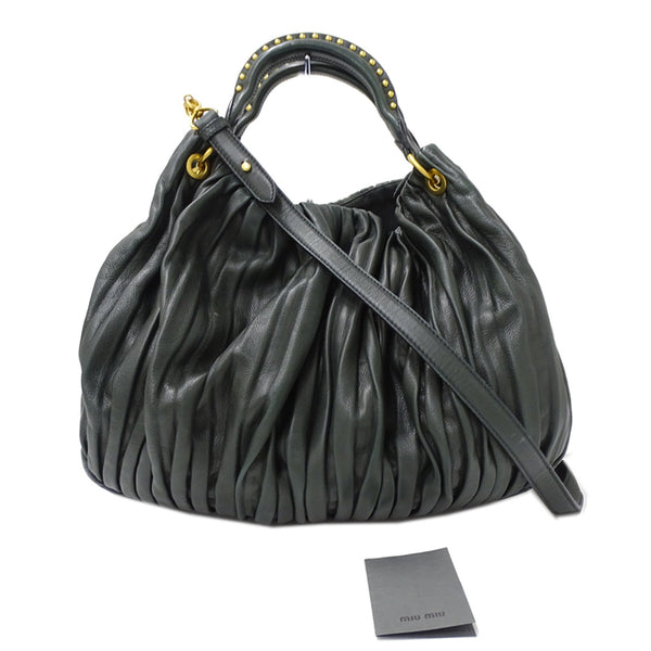 Miu MIUMIU Women\'s Handbag/Shoulder Bag, 2-Way, Leather, Dark Green