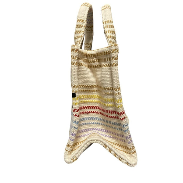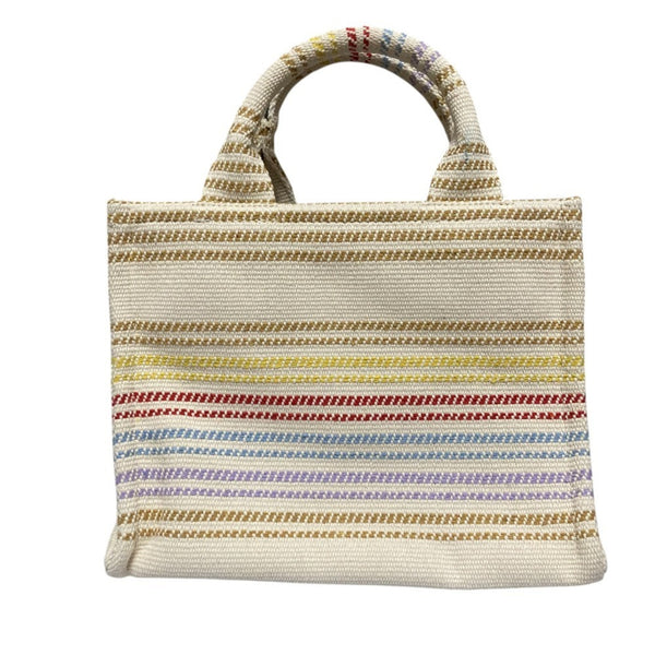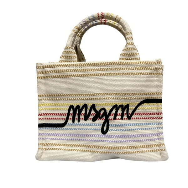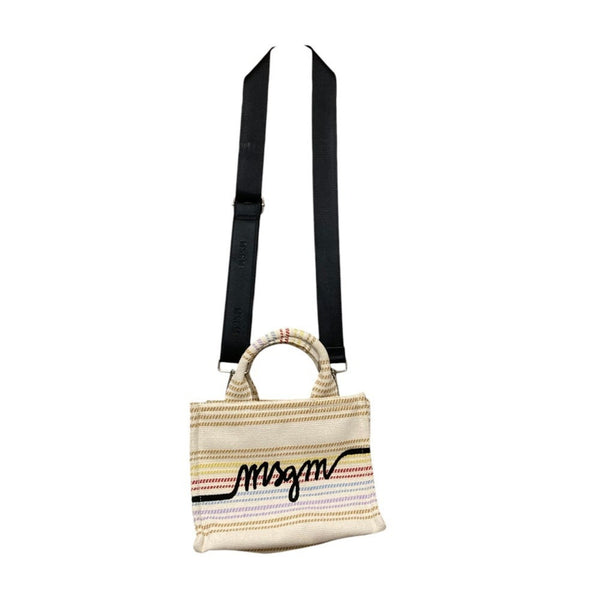 MSGM Canvas Jacquard Stitch 2-Way Handbag/Shoulder Bag, Beige, Women\'s