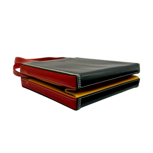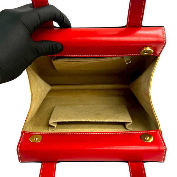 Nearly unused LOEWE vintage logo-embossed calf leather handbag/mini tote bag in navy and red (20741)