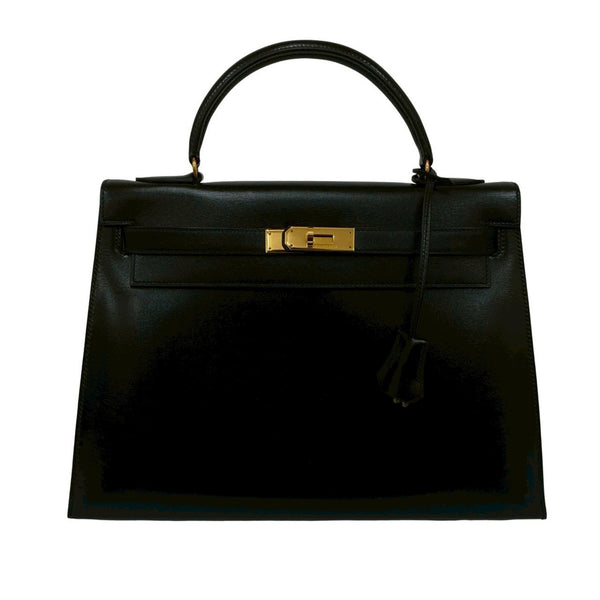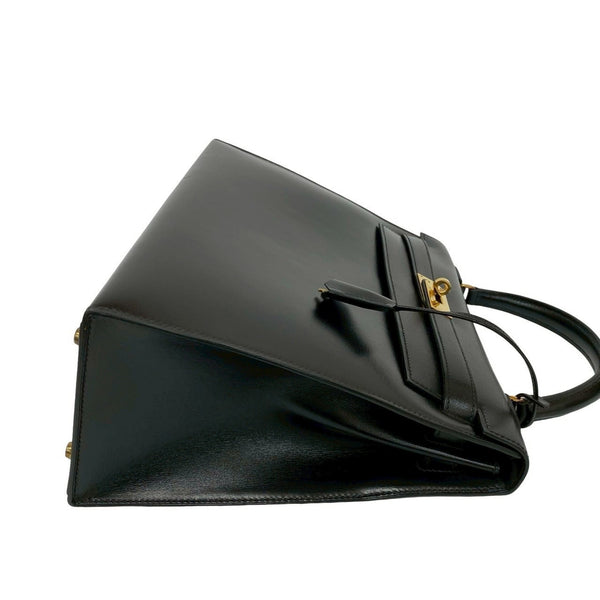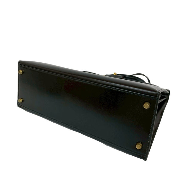 Nearly unused, T-stamped HERMES Kelly 32 box calf leather 2-way handbag/shoulder bag, black, 95967