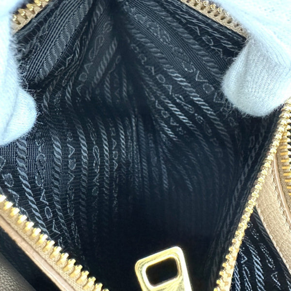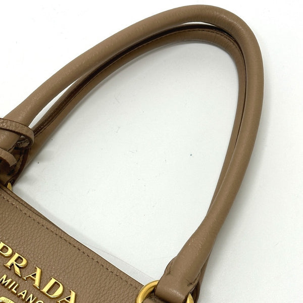 PRADA 1BA058 Logo 2-Way Bag Shoulder Tote Handbag Leather Women\'s Beige