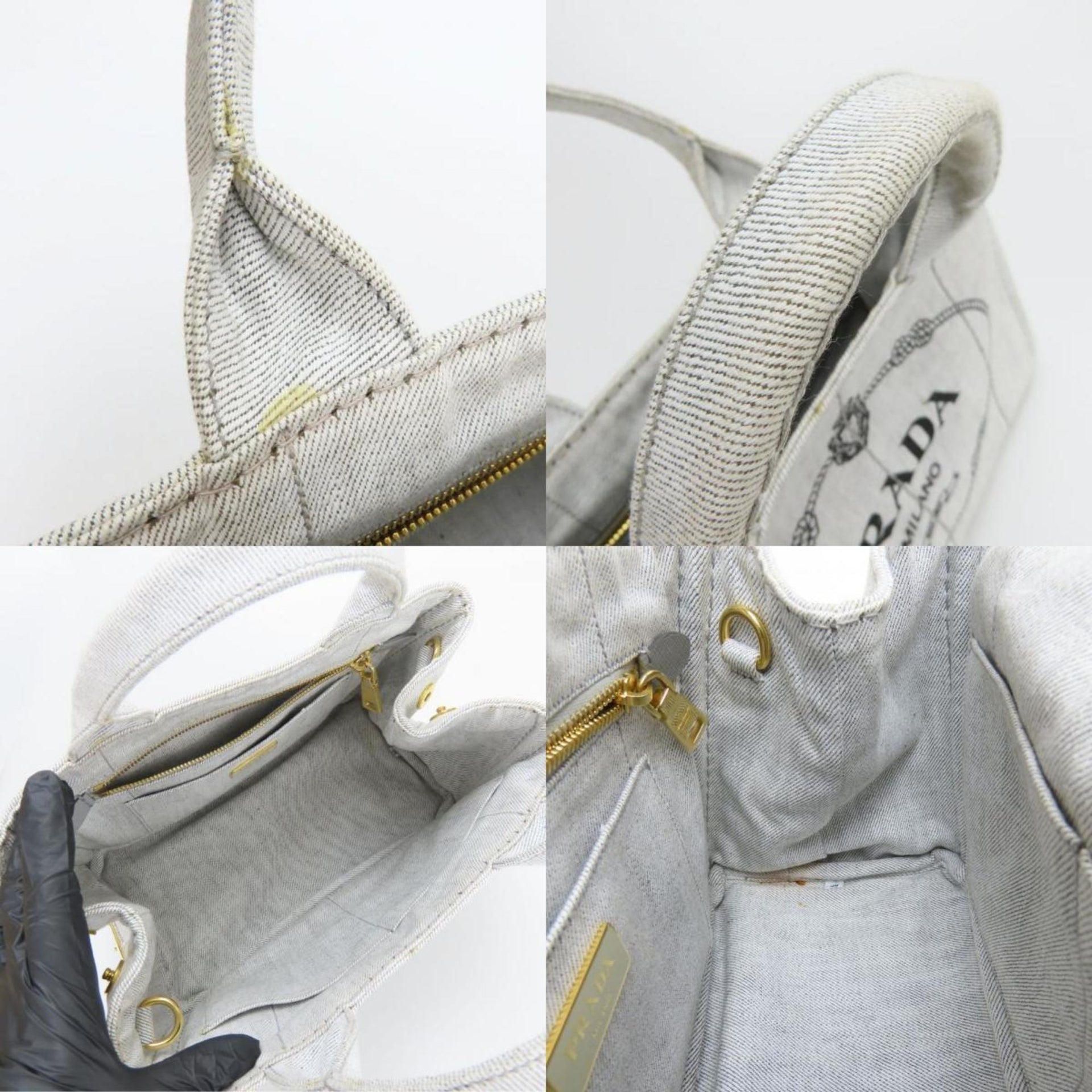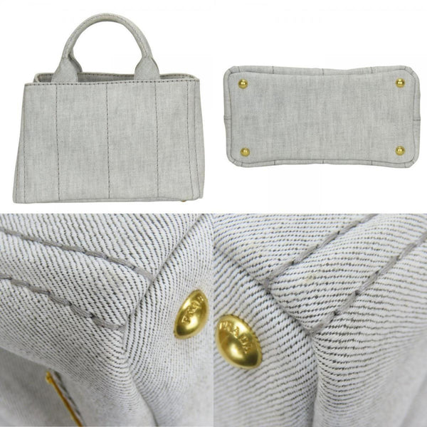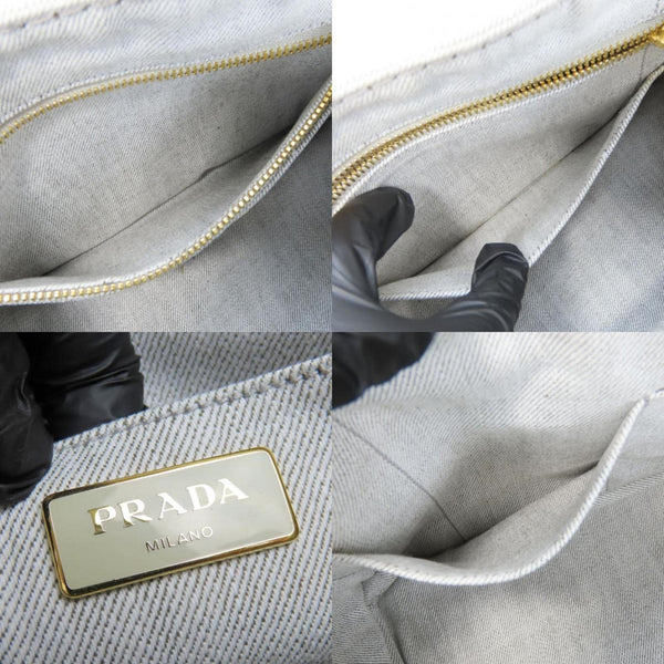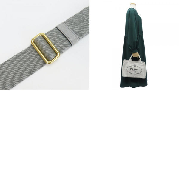 Prada Canapa Handbag 1BG439 Canvas Bianco Light Gray Shoulder Bag for Women