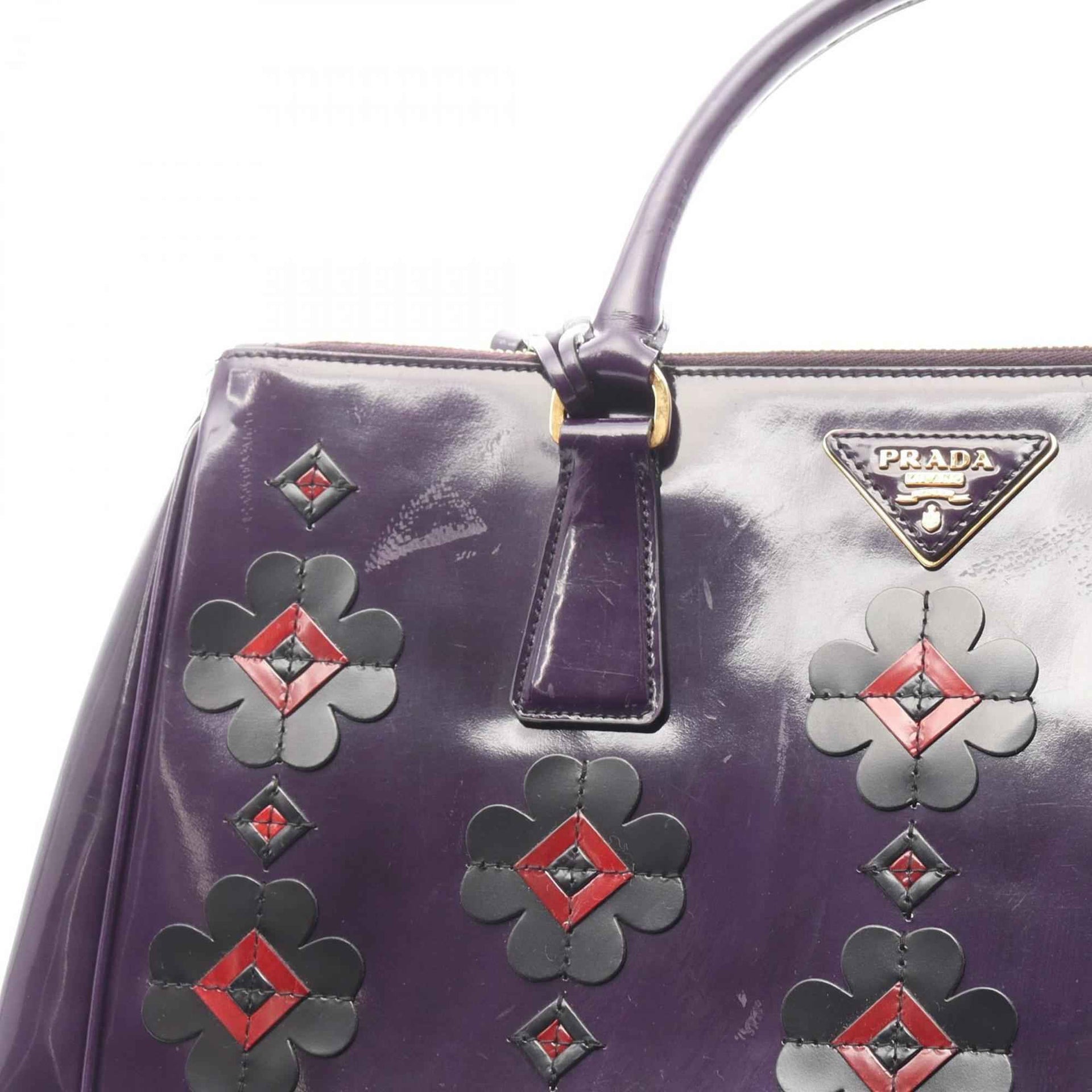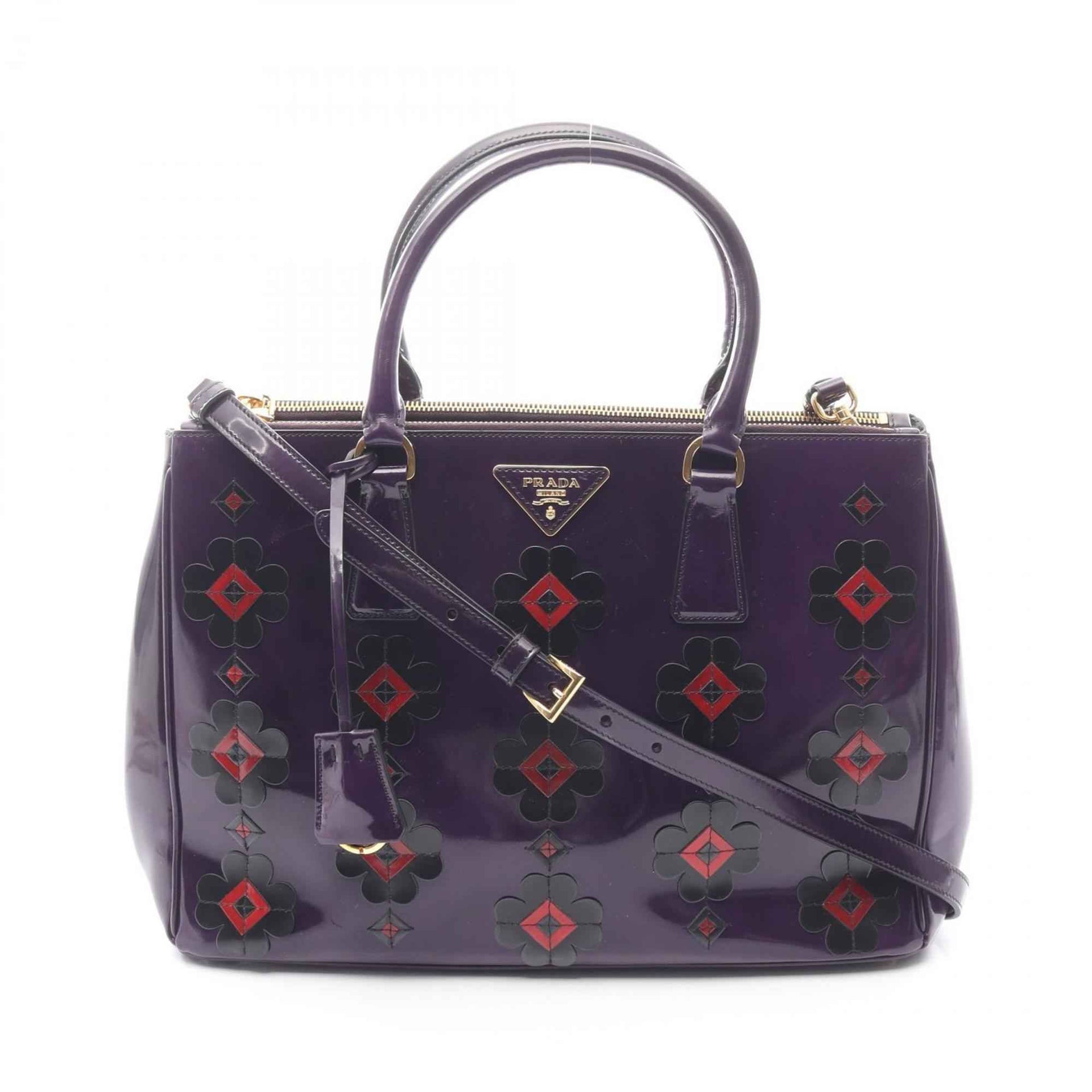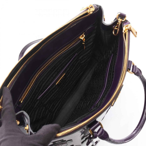 Prada Galleria Flower Handbag in Patent Leather, Multicolored Purple, B2274F