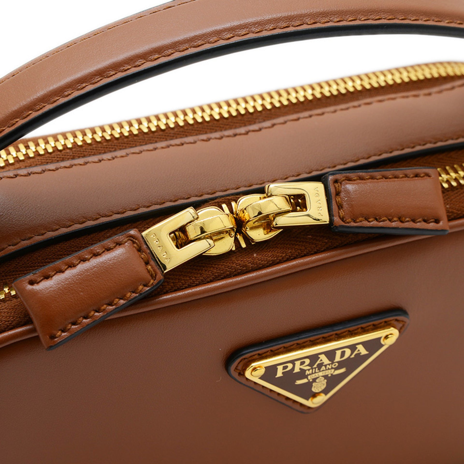 Prada Odette Handbag Shoulder Bag Leather Brown 1BH203