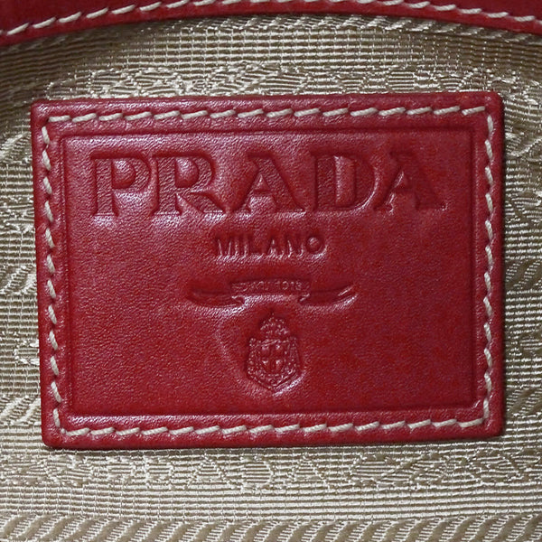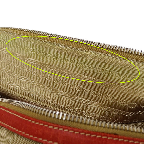 Prada PRADA bag women\'s brand handbag logo jacquard canvas leather beige red