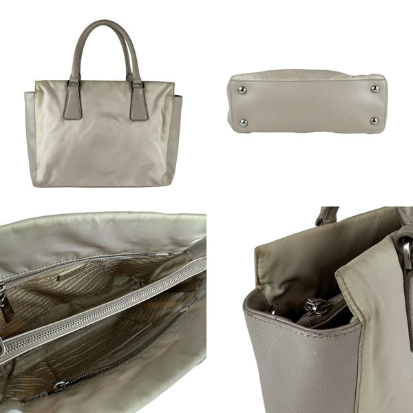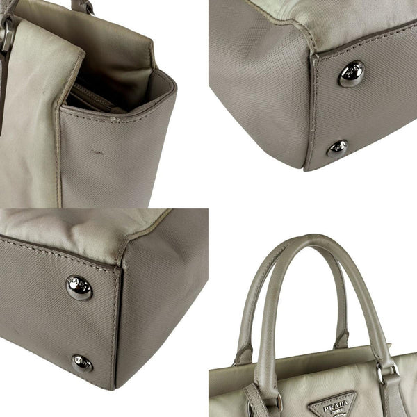 Prada PRADA handbag shoulder bag nylon leather light gray women\'s z7053