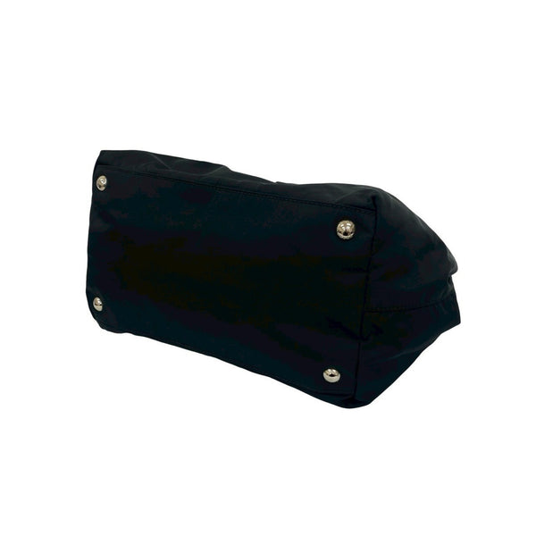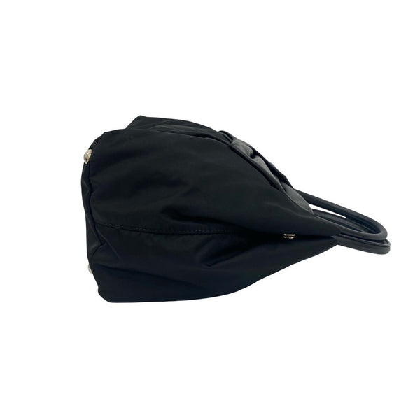 PRADA Prada logo hardware nylon and leather ribbon motif handbag tote bag in black 73299