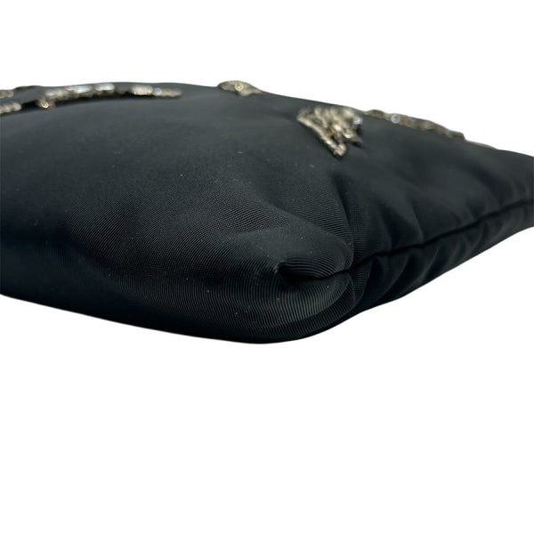 PRADA Prada Nylon Bag with Beads, 2-Way Handbag/Shoulder Bag, Black, Triangle, Women\'s