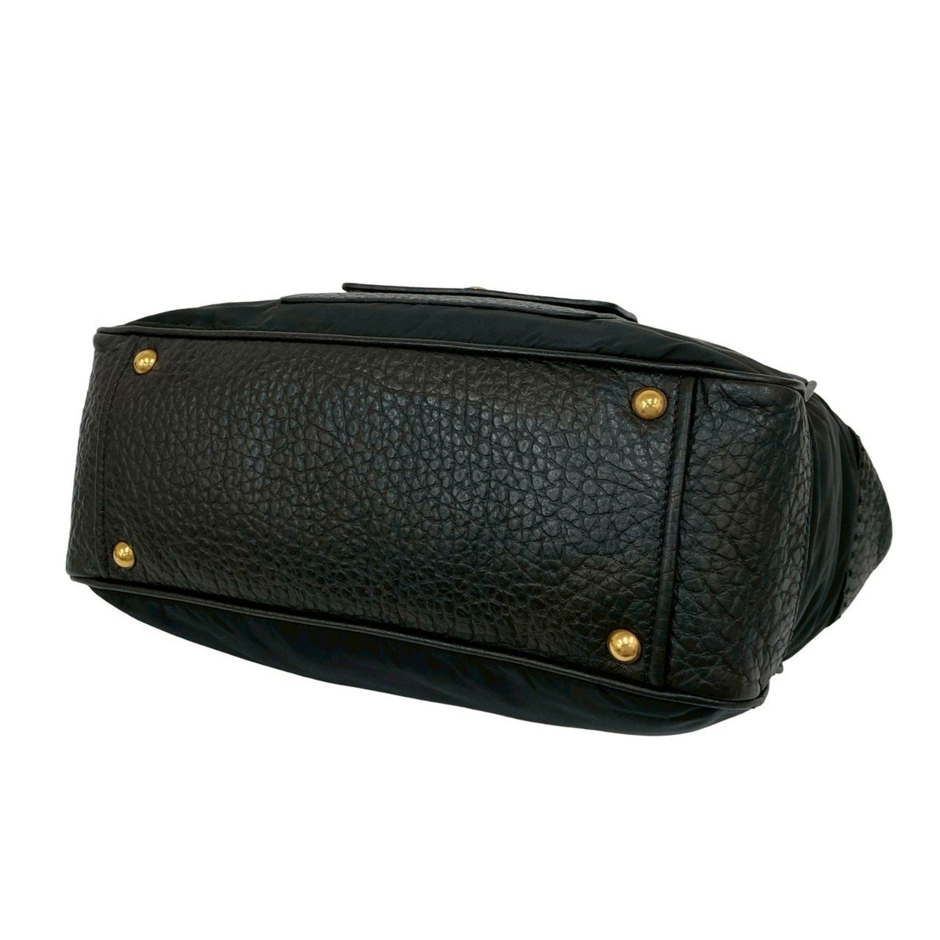 PRADA Prada Triangle Logo Gold Hardware Nylon Leather Handbag Mini Boston Bag Black 63788
