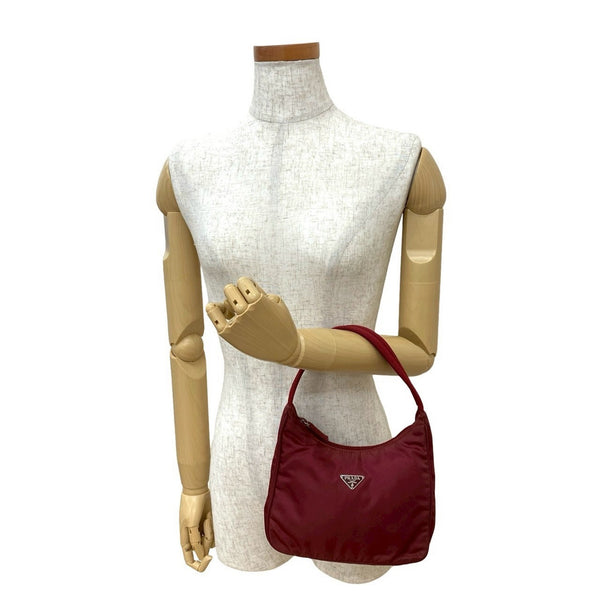 PRADA Prada Triangle Logo Plate Hardware Tessuto Nylon Mini Handbag Pouch One-Shoulder Bag Red 09157