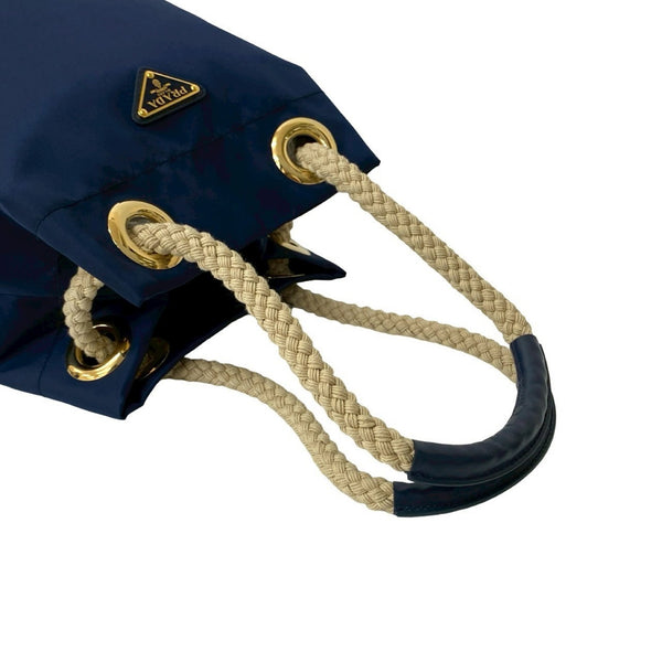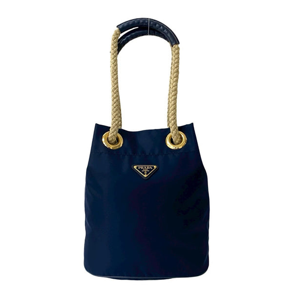 PRADA Prada Triangle Logo Plate with Metal Hardware Nylon and Leather Shoulder Bag/Handbag/Tote Bag Navy 34484