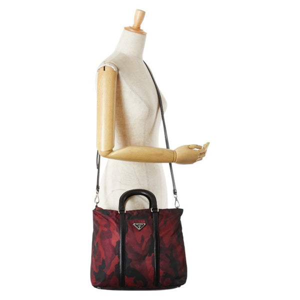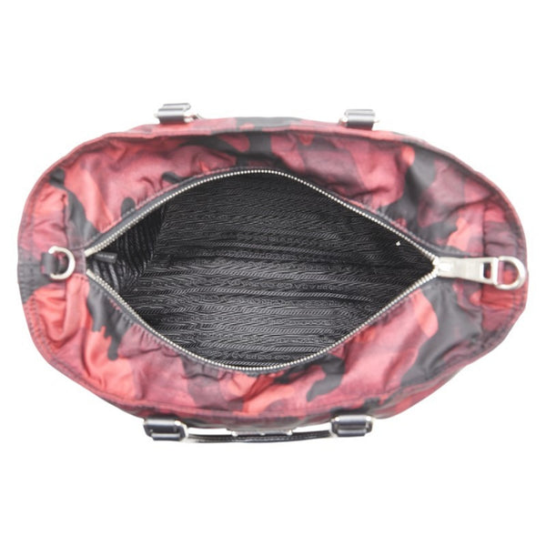 Prada Triangle Logo Camouflage Handbag/Shoulder Bag BN2791, 2-Way, Wine Red, Black, Nylon, Leather, Women\'s