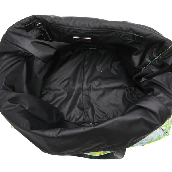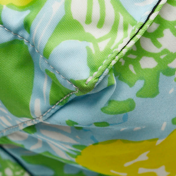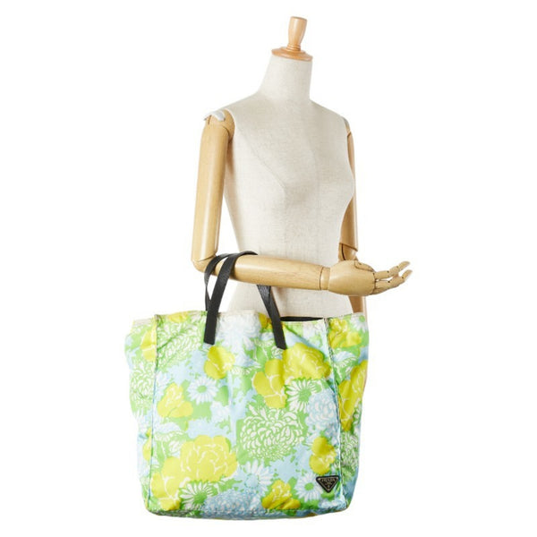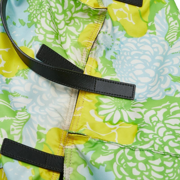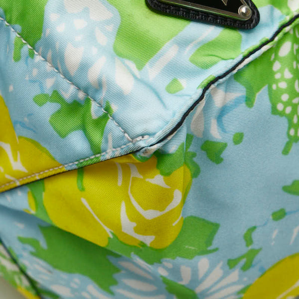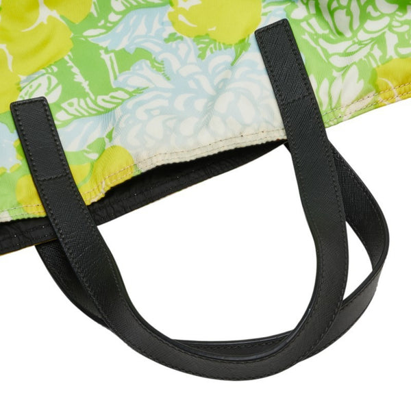Prada Triangle Logo Plate Flower Tote Bag Handbag VA0905 Green Yellow Blue Nylon Leather Women\'s PRADA