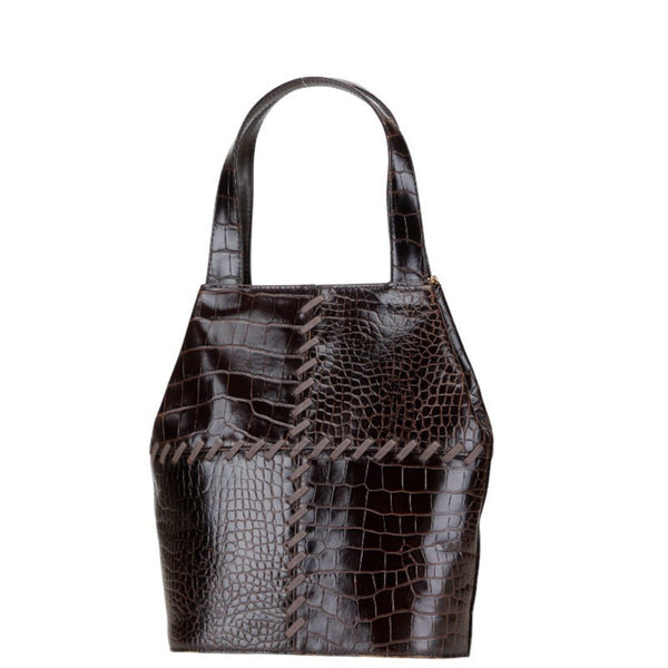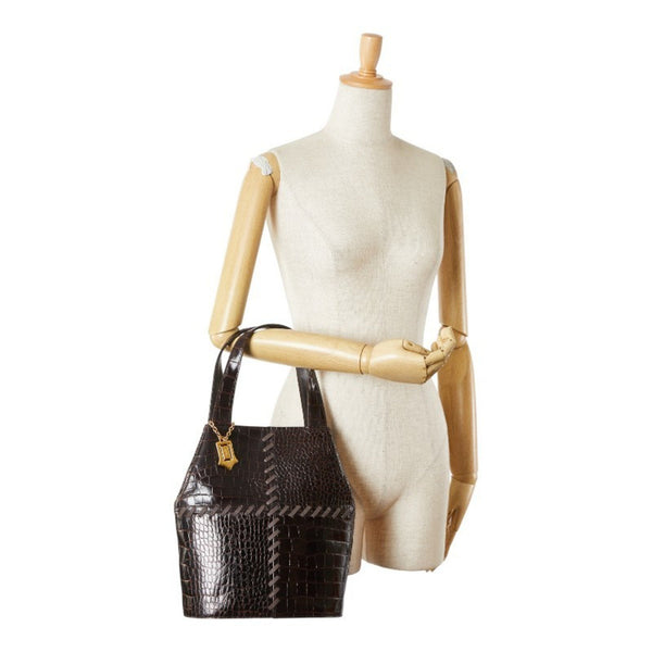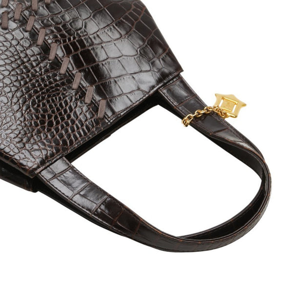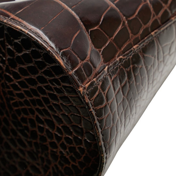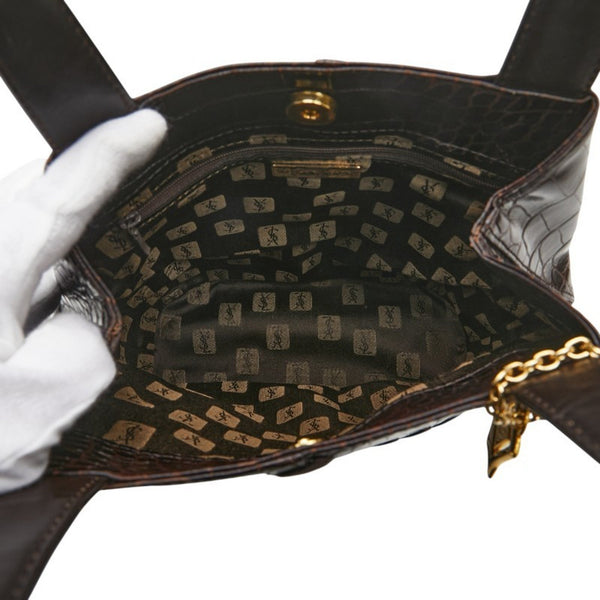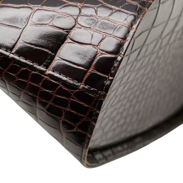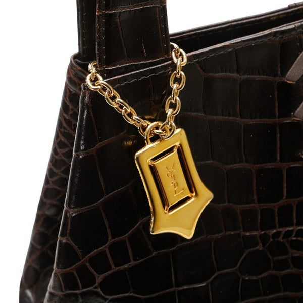 Saint Laurent Crocodile Embossed Handbag Brown Leather Women\'s SAINT LAURENT