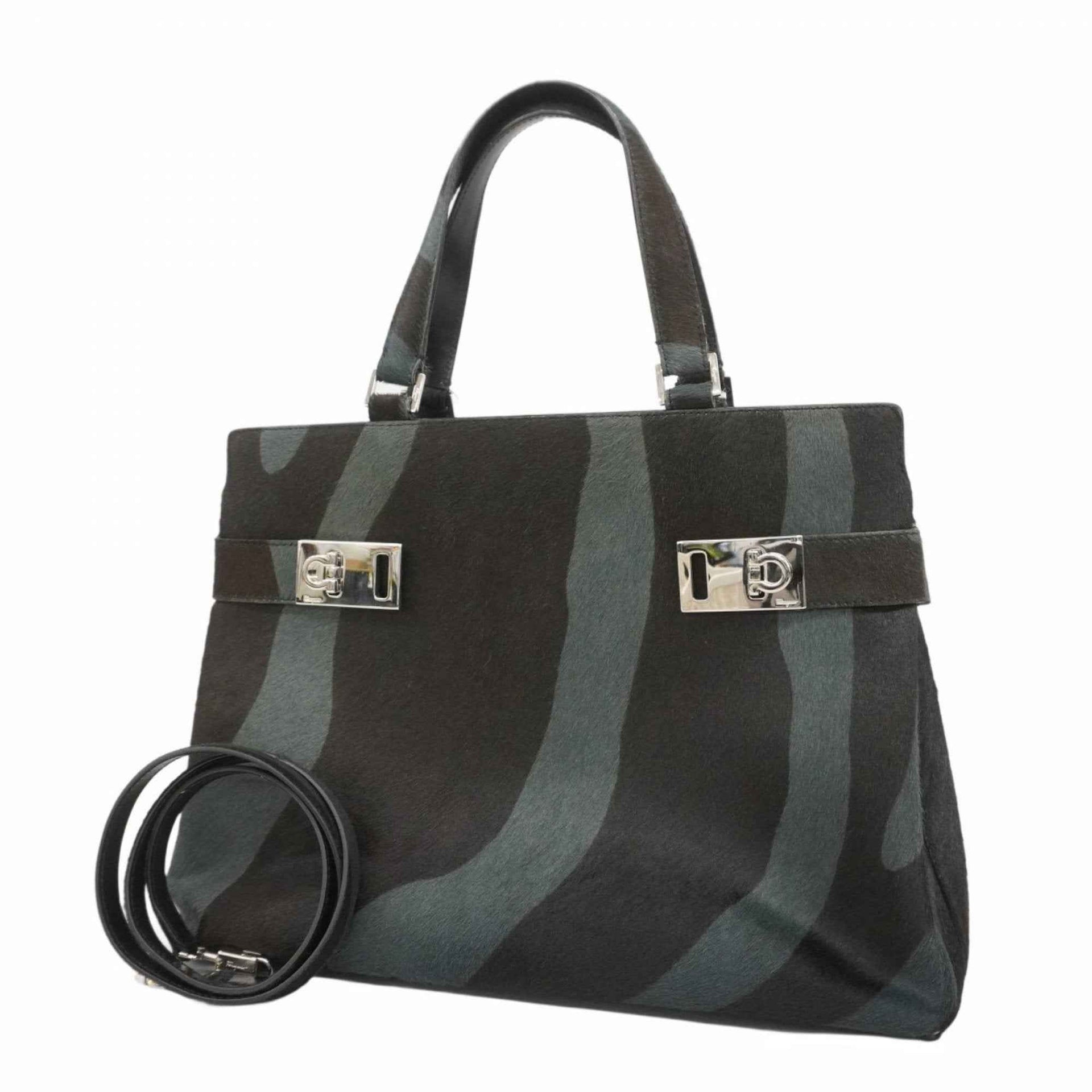 Salvatore Ferragamo Gancini handbag in black leather for women