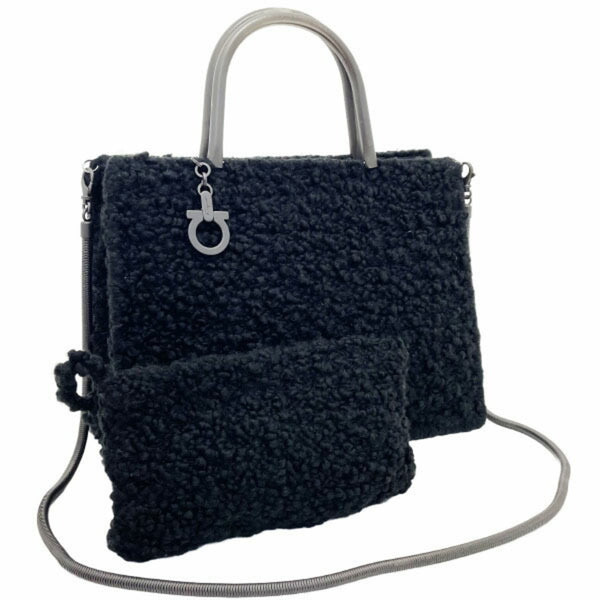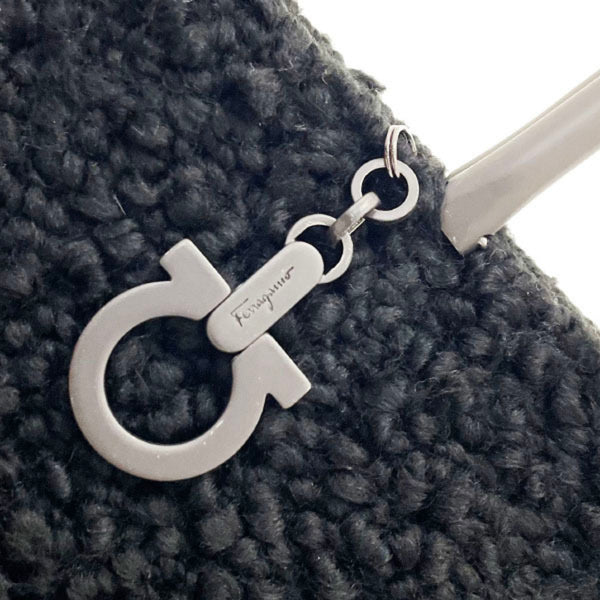 Salvatore Ferragamo Gancini Handbag in Wool and Metallic Black, Size 21 9734. Also available: Handbag, Tote Bag, Shoulder Chain HH-15798.
