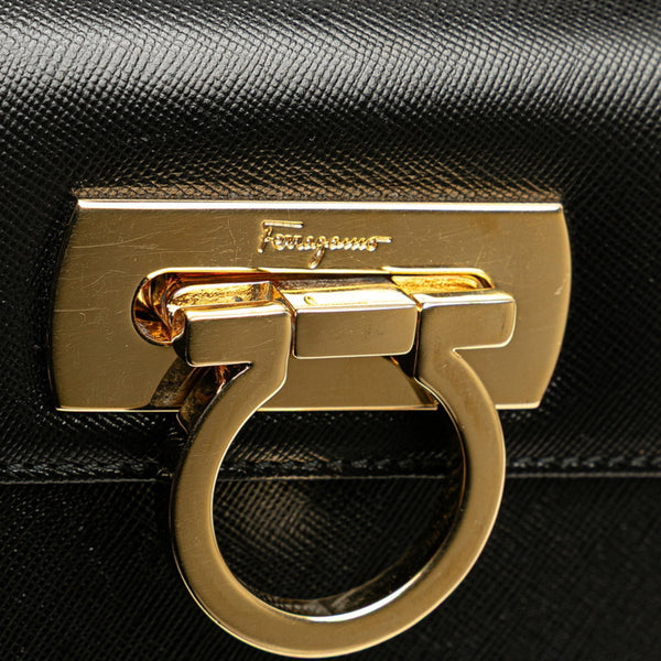 Salvatore Ferragamo Gancini handbag/shoulder bag, 2-way, black leather, women\'s.