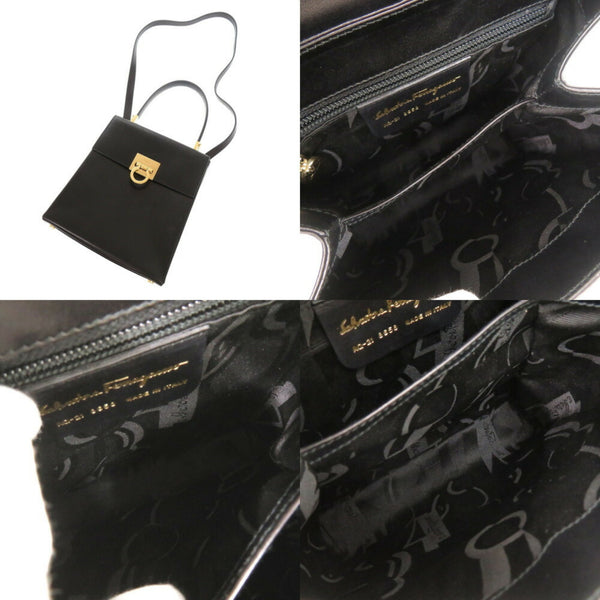 Salvatore Ferragamo Gancini Leather Black Handbag/Shoulder Bag 0857Salvatore