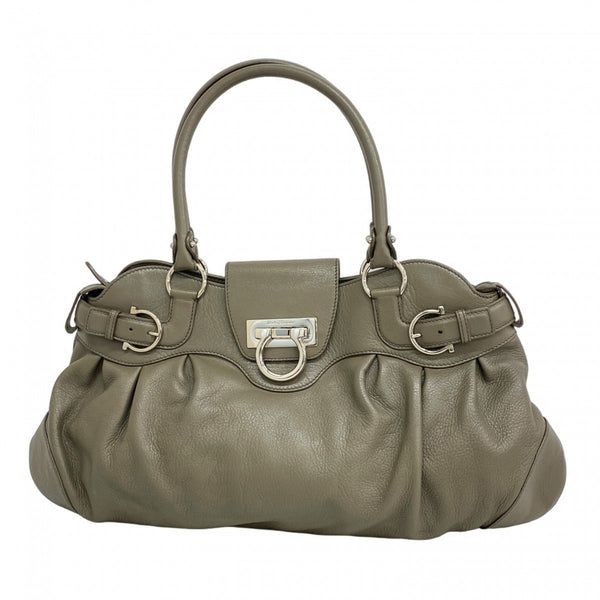 Salvatore Ferragamo Gancini Leather Handbag, Gray, Women\'s