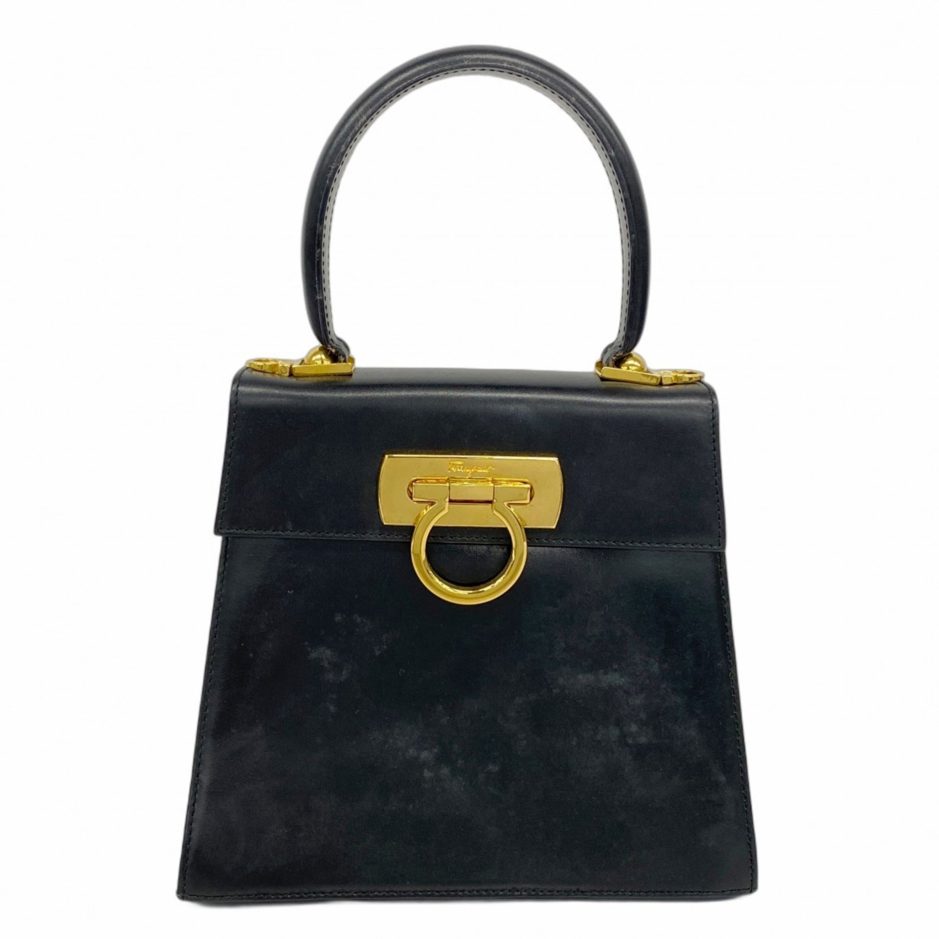 Salvatore Ferragamo Gancini Leather Handbag in Black for Women