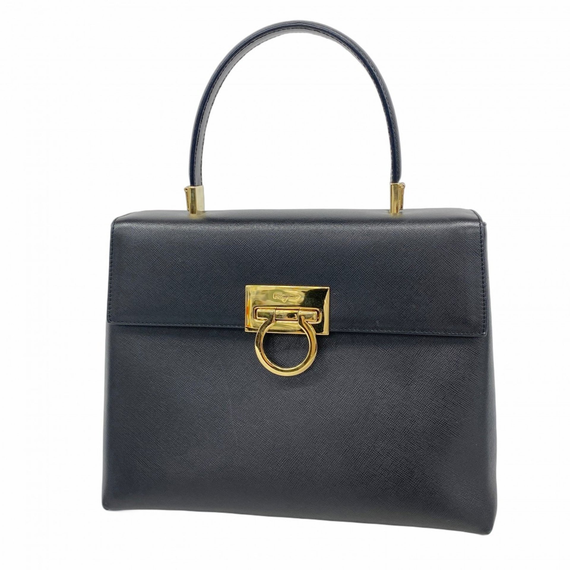 Salvatore Ferragamo Gancini Leather Handbag in Black for Women