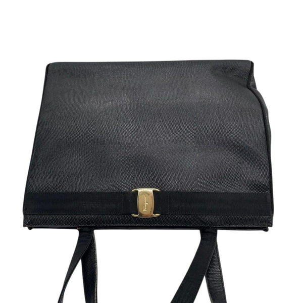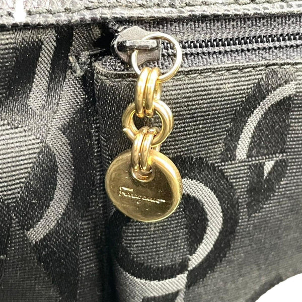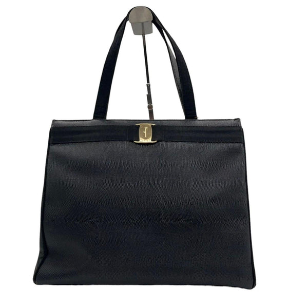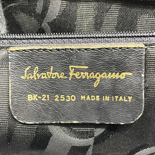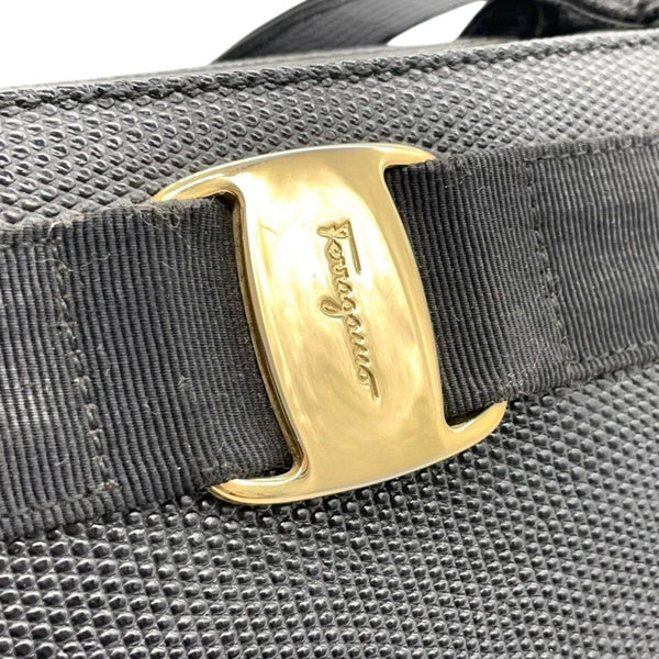 Salvatore Ferragamo Vara Ribbon Handbag Tote Bag BK-21 2530 Leather Canvas Black Gold Hardware Women\'s C4
