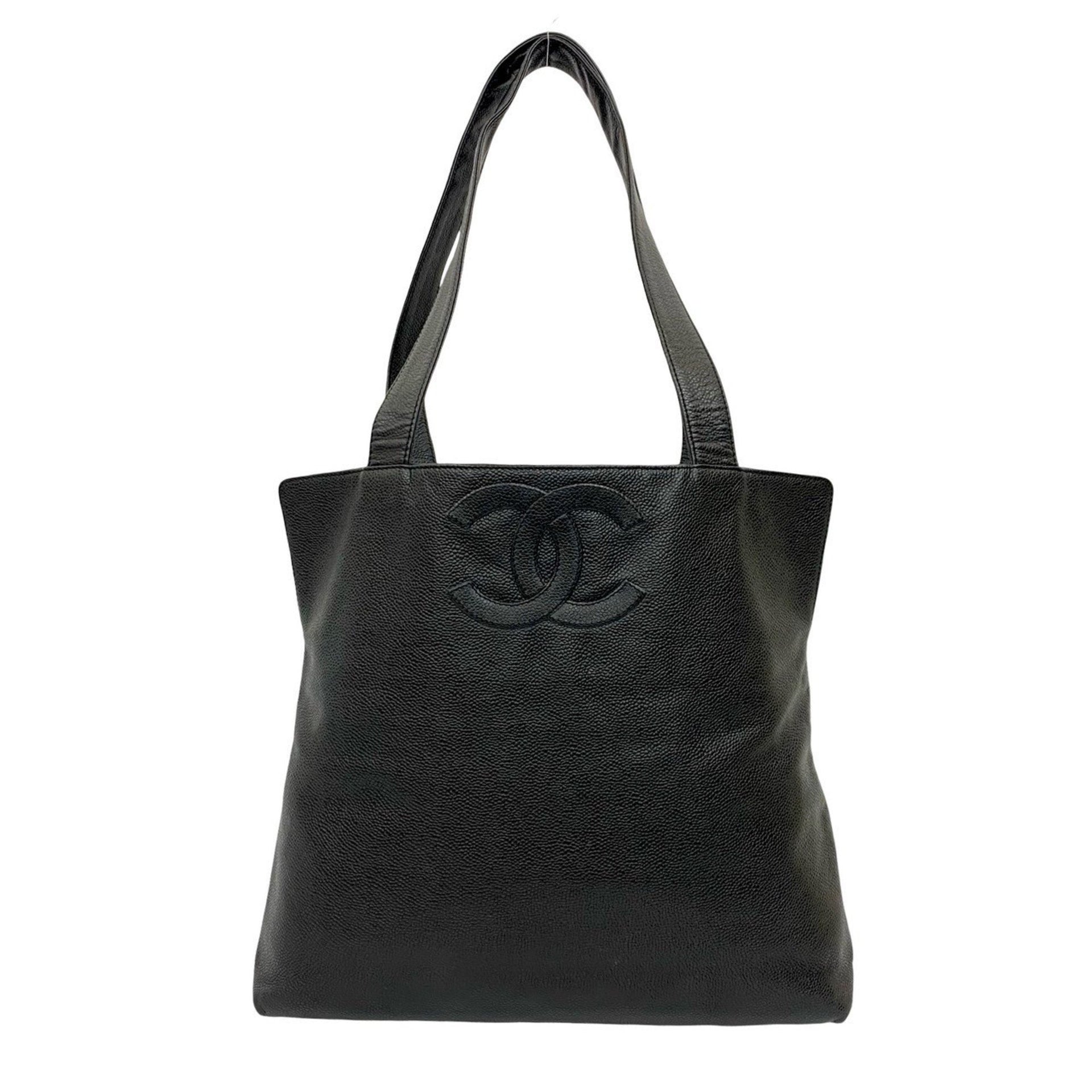 Seal No. 5 CHANEL Vintage Coco Mark Caviar Skin Tote Bag Handbag Black 27272