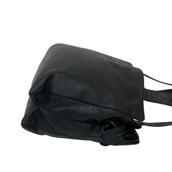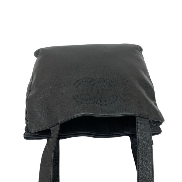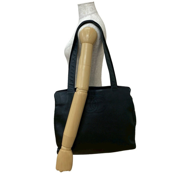 Seal No. 6 CHANEL Vintage Coco Mark Caviar Leather Tote Bag Handbag Black 37984