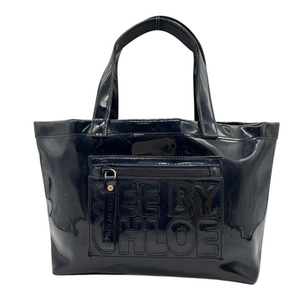 See by Chloé SEE BY CHLOE u15 Black Tote Bag with Large Logo and Silicone, One-Shoulder Handbag, Gold Hardware, Can be Carried Over the Shoulder