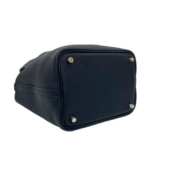 T-stamped HERMES Picotin Lock PM Taurillon Clemence Leather Handbag/Tote Bag, Navy Blue, 05285