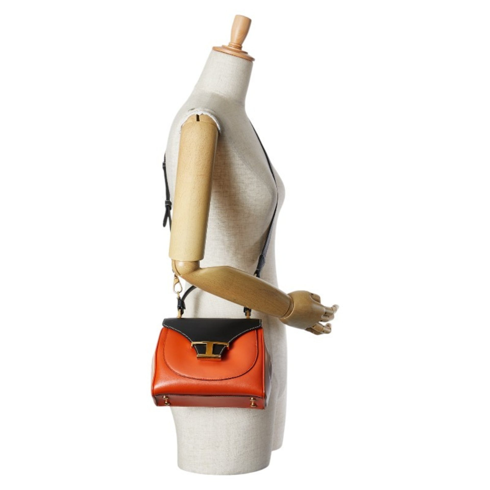 Tod\'s T Timeless Handbag/Shoulder Bag, 2-Way, Orange, Black, Beige, Leather, Women\'s, TOD\'S