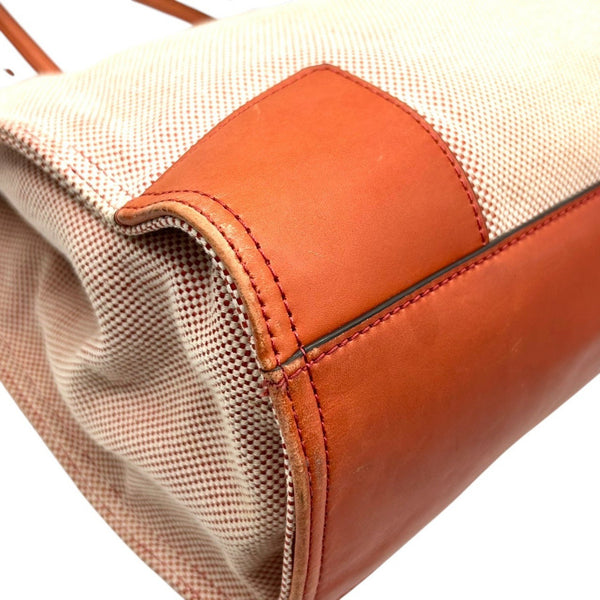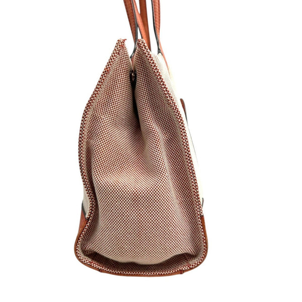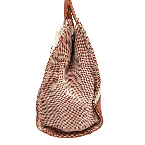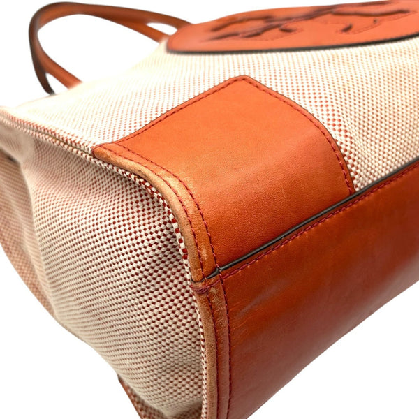 Tory Burch Ella Tote Bag for Women, Canvas and Leather, Orange Brown, Handbag with Big Logo, Size s36