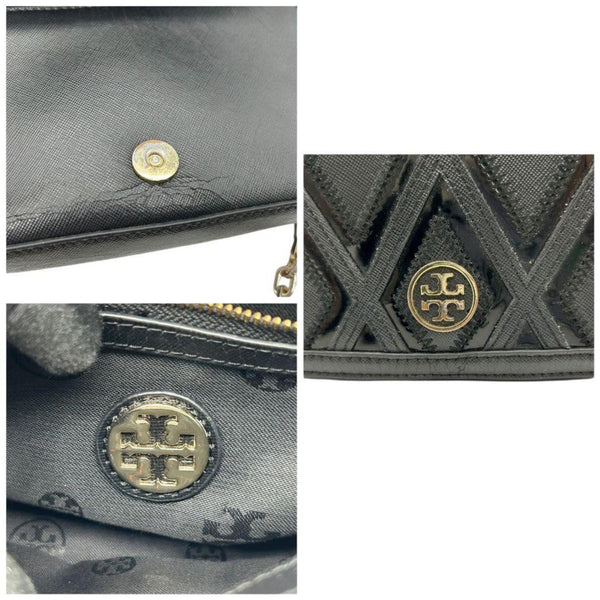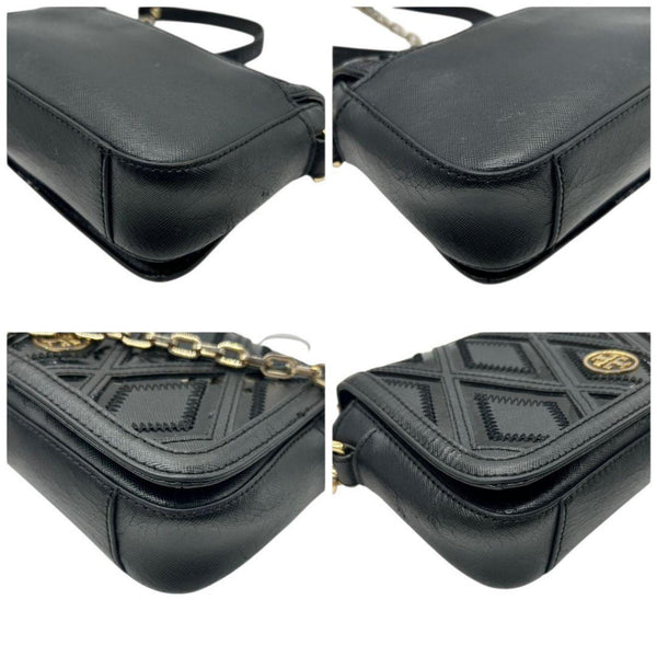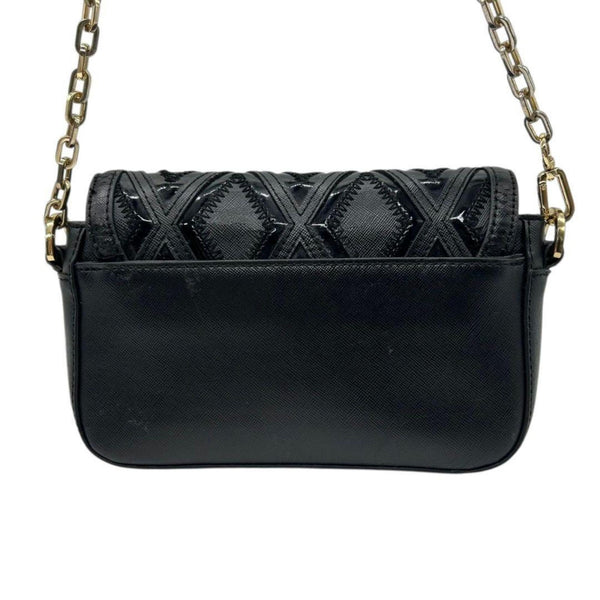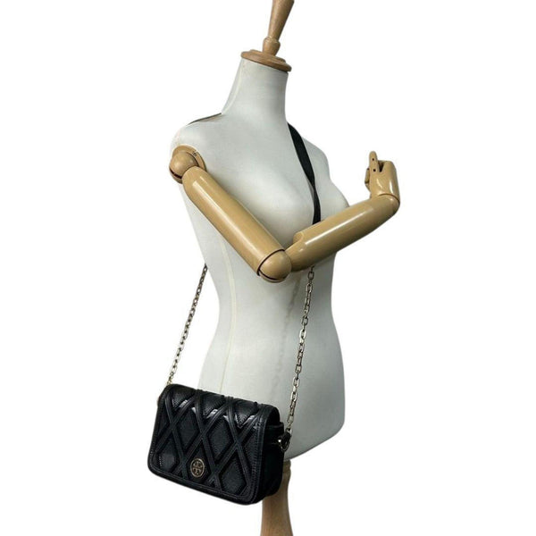 Tory Burch Fleming Shoulder Bag, Black Chain Leather Flap, Logo Plate, Gold Hardware, Clutch Handbag