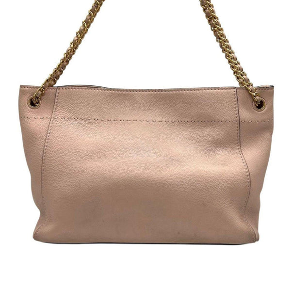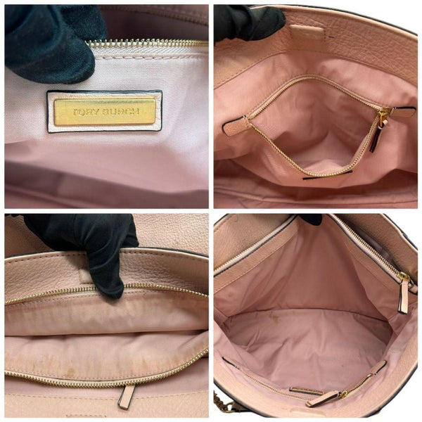 Tory Burch Large Logo 2-Way Leather Tote Bag in Pink, One-Shoulder Handbag/Shoulder with Gold Hardware