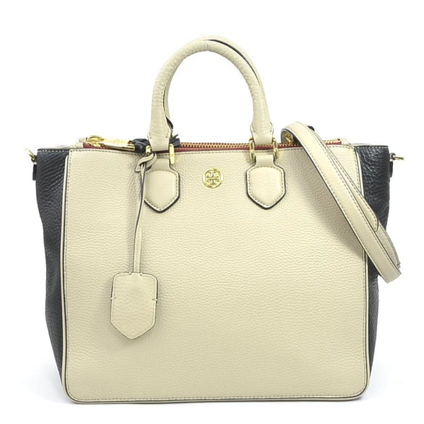 Tory Burch Women\'s Leather Handbag Shoulder Bag in Beige and Black (56352a)
