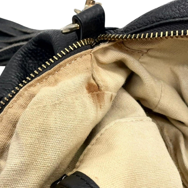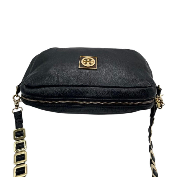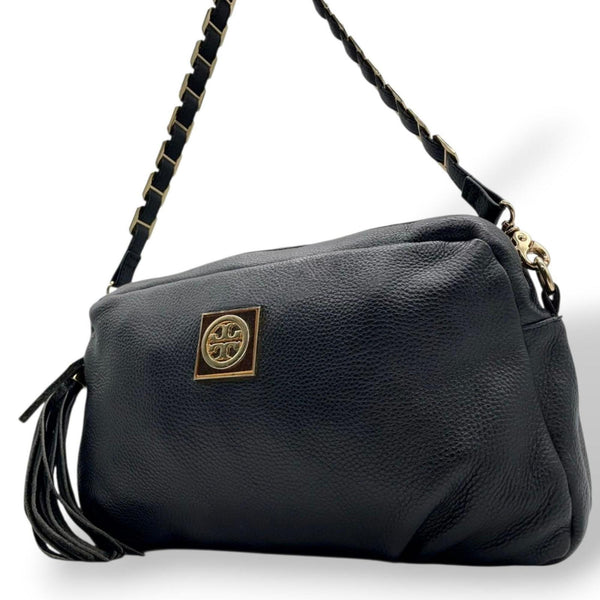 TORY BURCH Women\'s Shoulder Bag/Handbag, 2-Way, Chain Bag with Tassel and Fringe, Black Leather Gold Hardware, Size s39