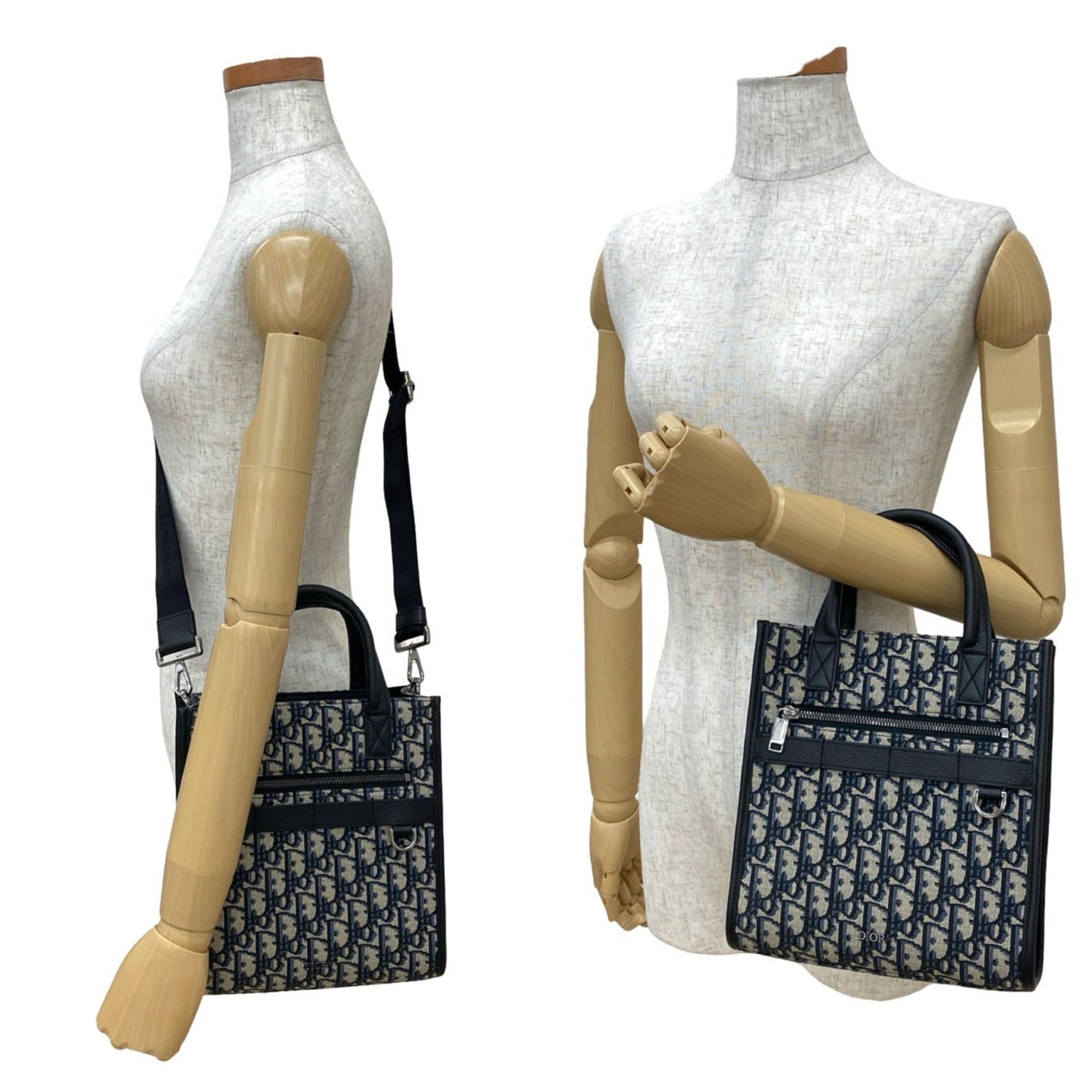 Unused, stored Christian Dior North South Oblique Leather and Canvas 2-Way Handbag/Shoulder Bag, Navy, 71204