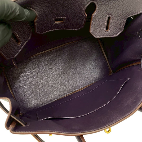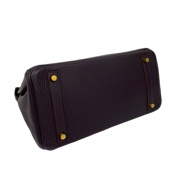 Unused, stored item. □R stamped. HERMES Birkin 30 Taurillon Clemence handbag/tote bag in purple raisin. 72490.