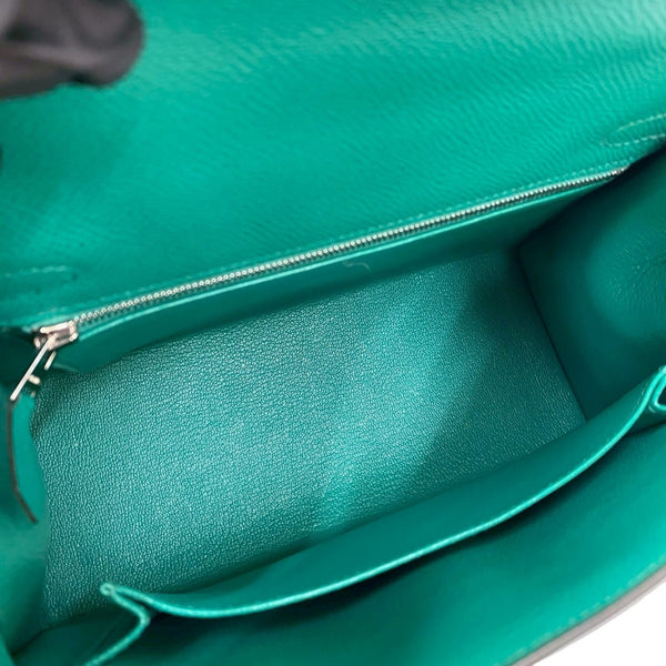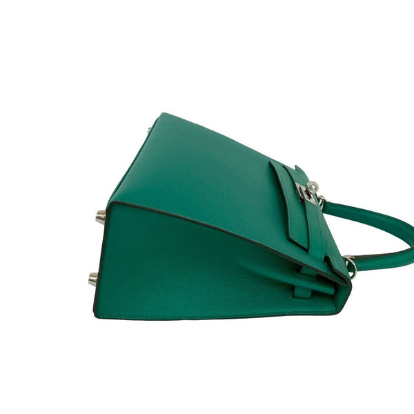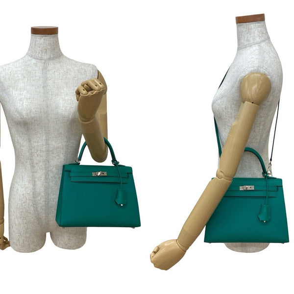 Unused, stored item with Z marking. HERMES Kelly 25 Epsom leather, 2-way handbag/shoulder bag, green, 615-1.