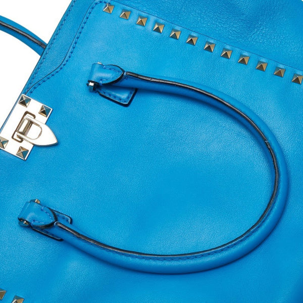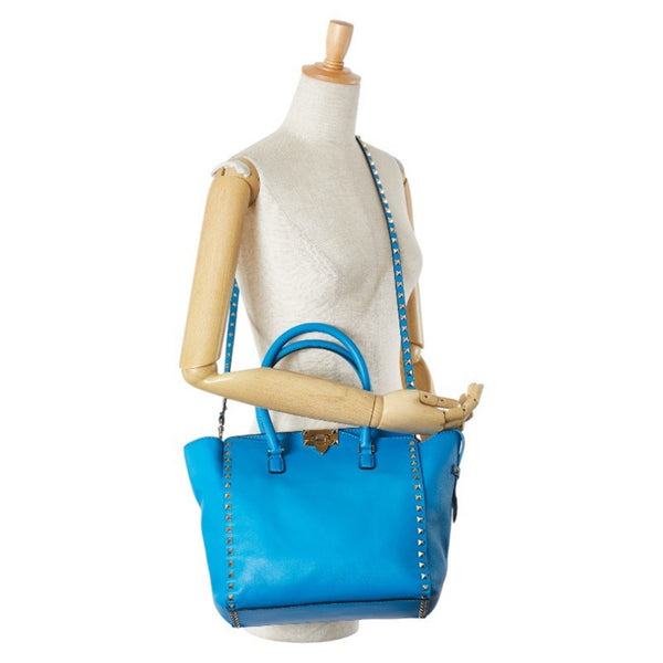 Valentino Rockstud handbag/shoulder bag, 2-way, blue leather, women\'s.