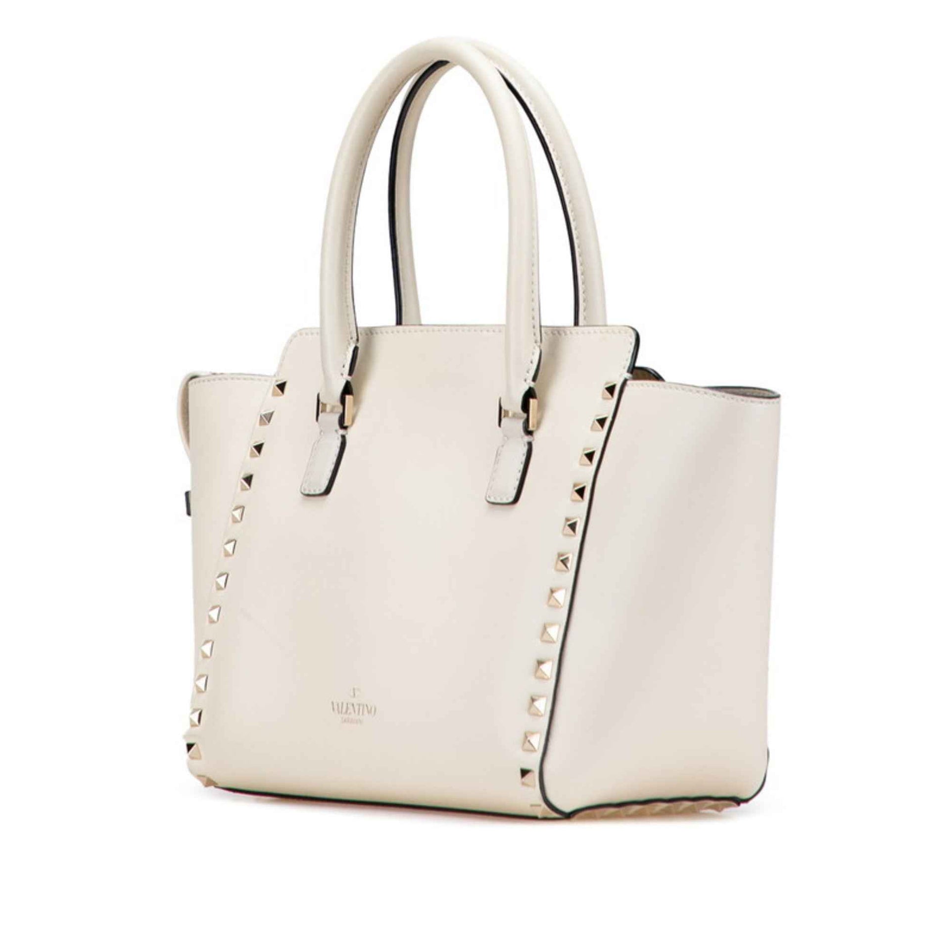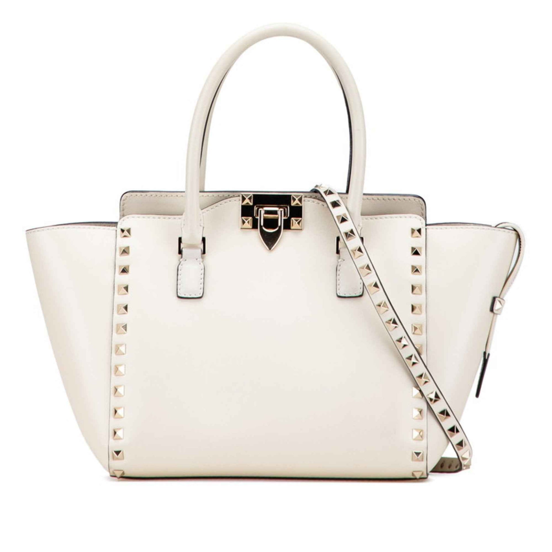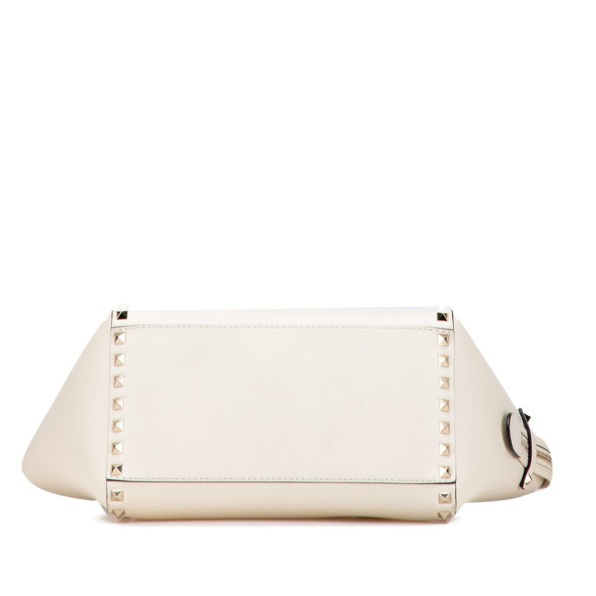 Valentino Rockstud shoulder bag/handbag, 2-way, white, ivory, and gold leather, women\'s.