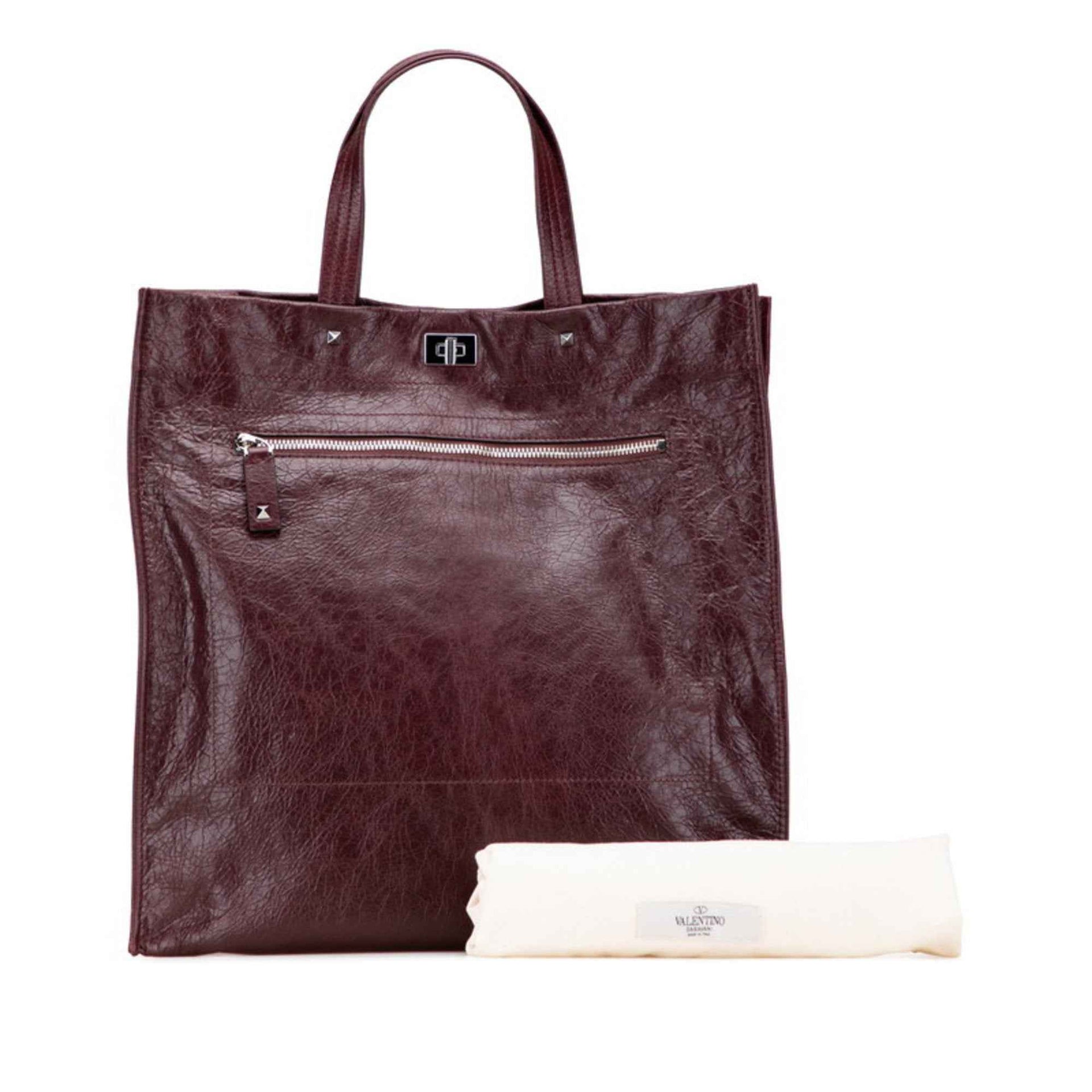 Valentino Rockstud Tote Bag Handbag Purple Leather Women\'s VALENTINO