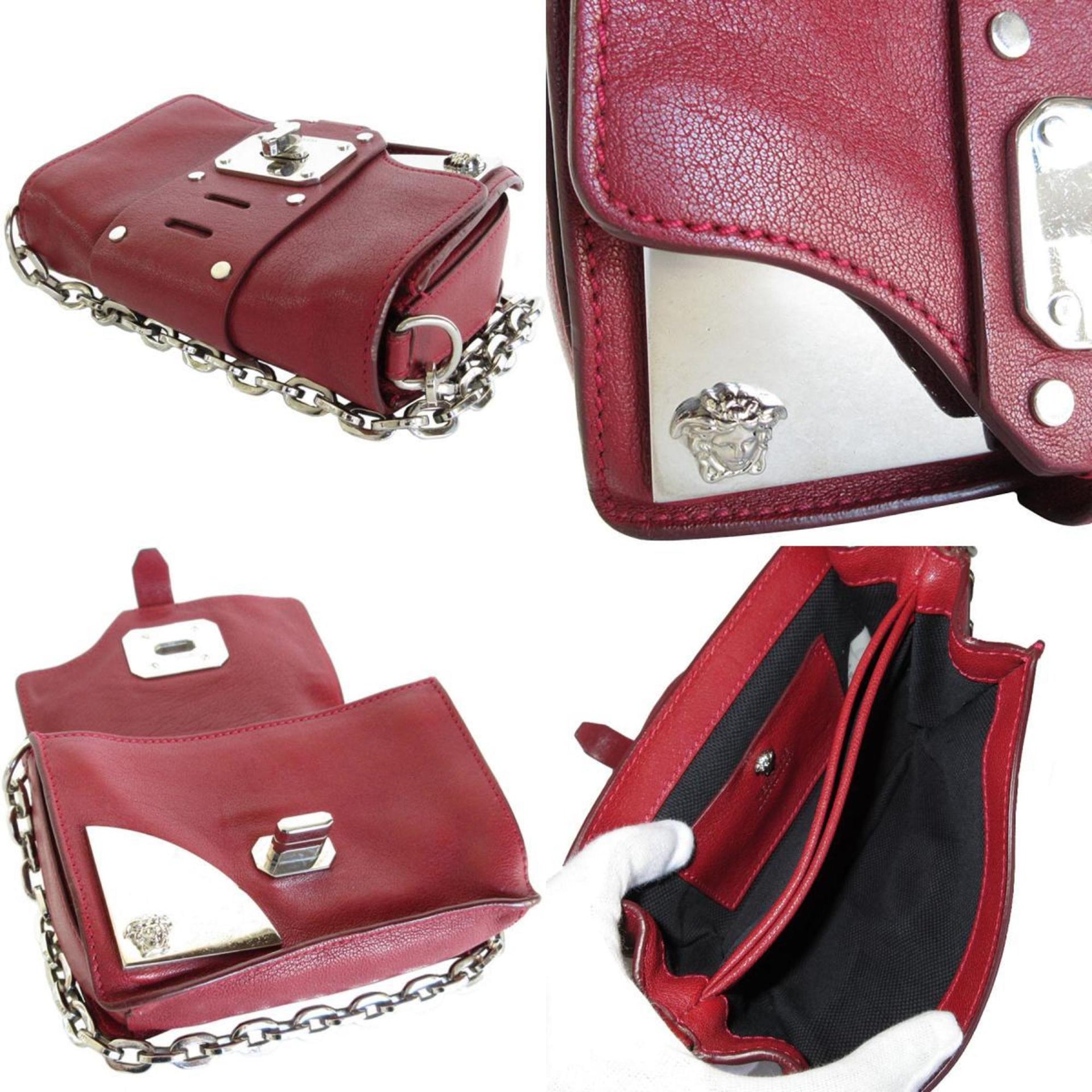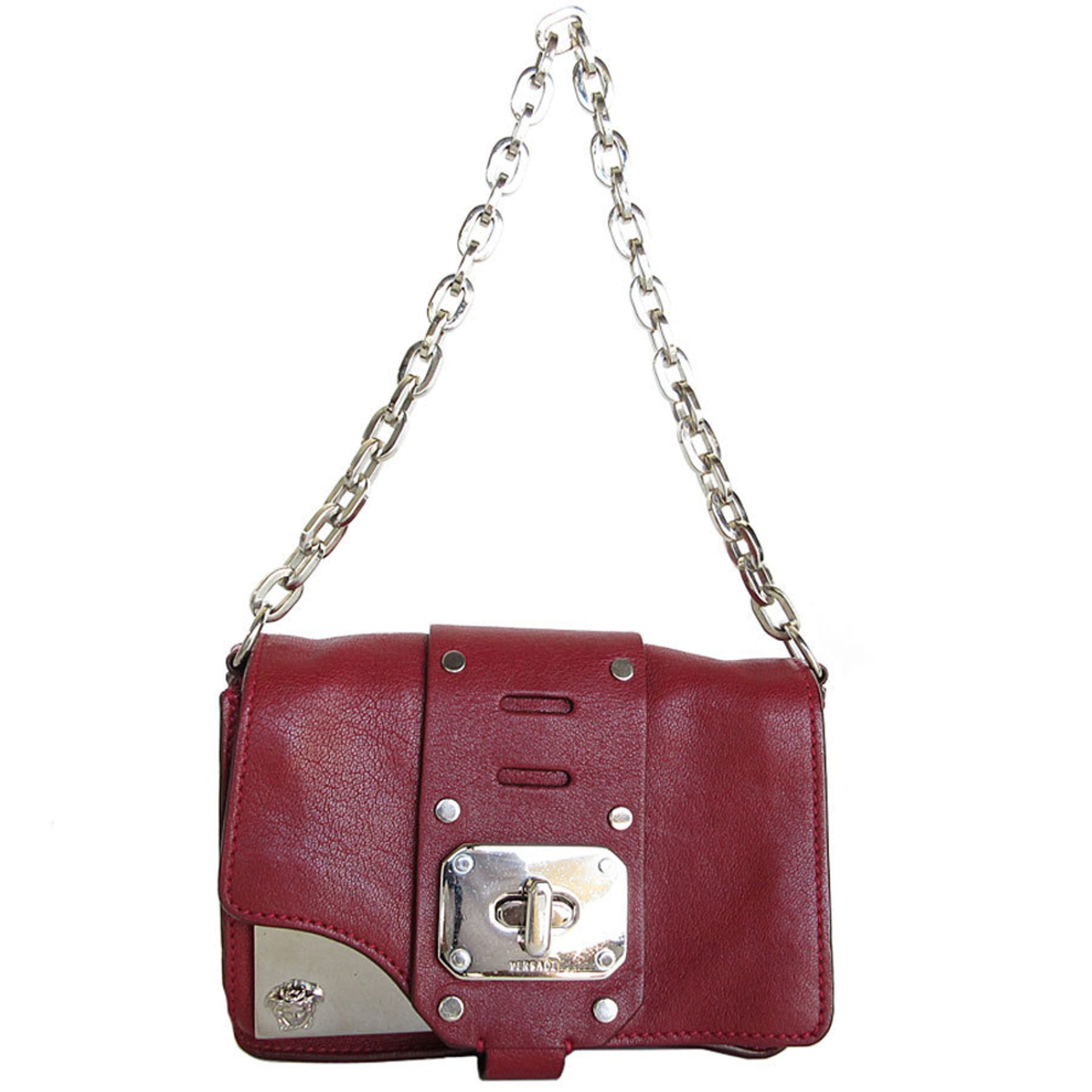 Versace Medusa Leather Handbag Shoulder Bag in Dark Red and Silver (s0681a) for Women