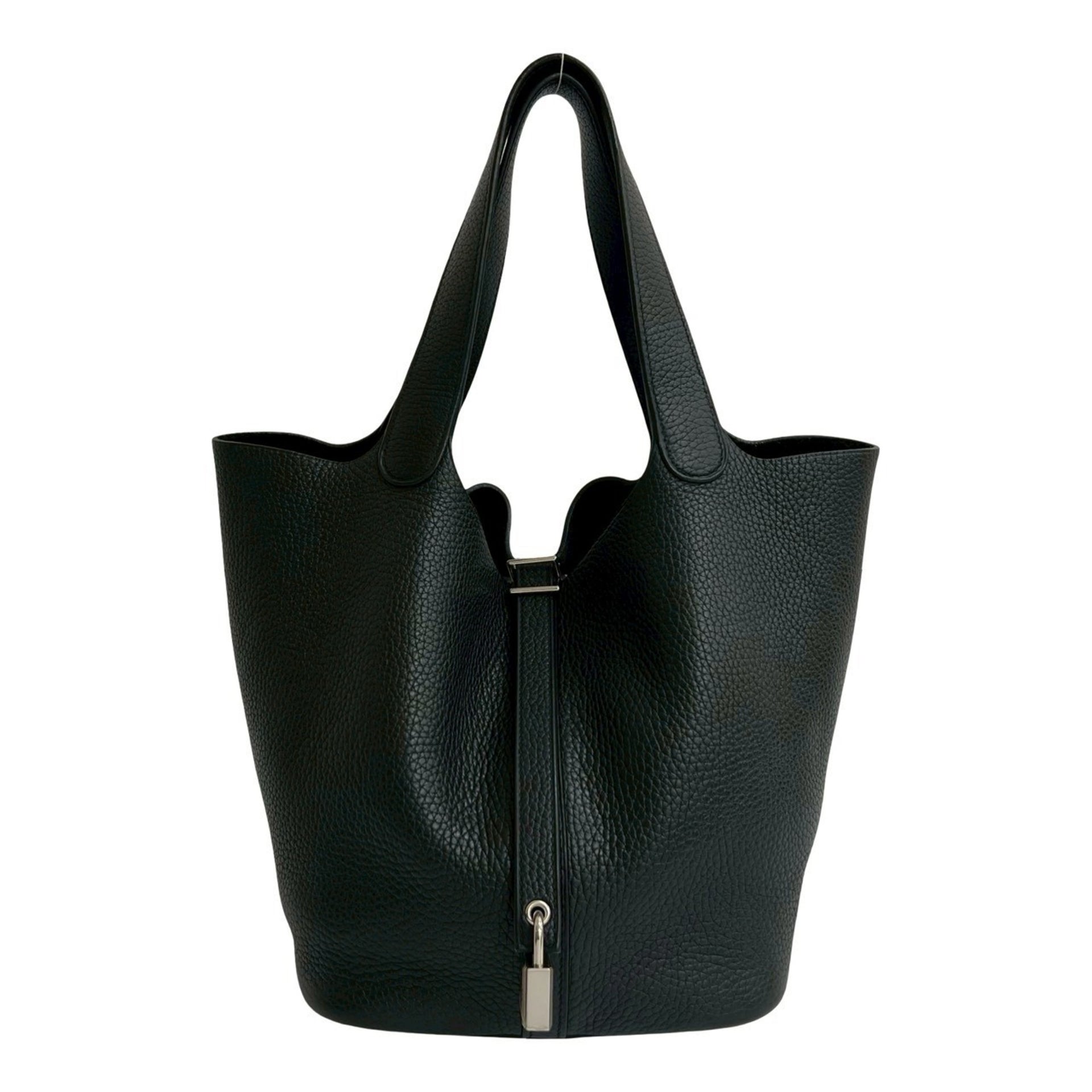 C Stamped HERMES Picotin Lock MM Taurillon Clemence Leather Handbag/Tote Bag Black 622-2