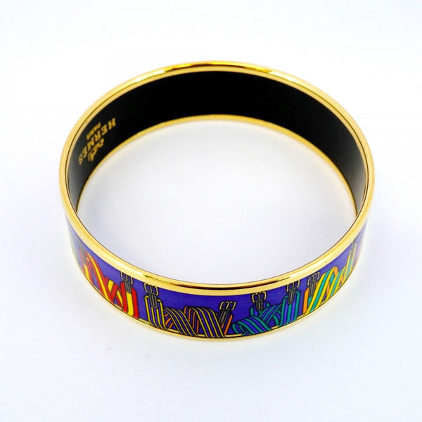 Hermes Bangle, GM Glazed, GP Plated, Cloisonné, Gold, Blue, Multicolor, Women\'s