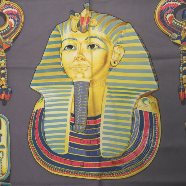 Hermes Carré 90 Tutankhamun Silk Gray Scarf Muffler 0123 HERMES