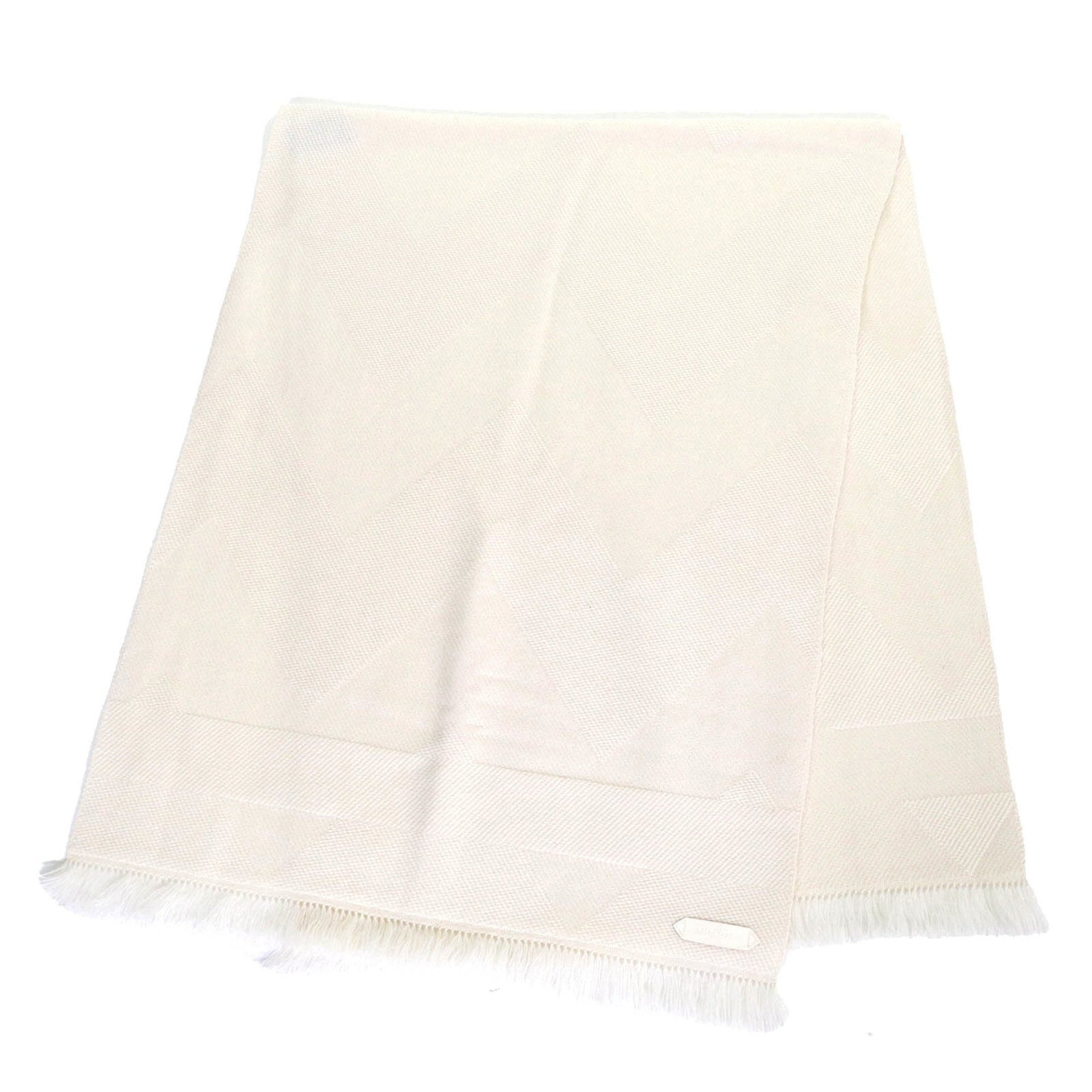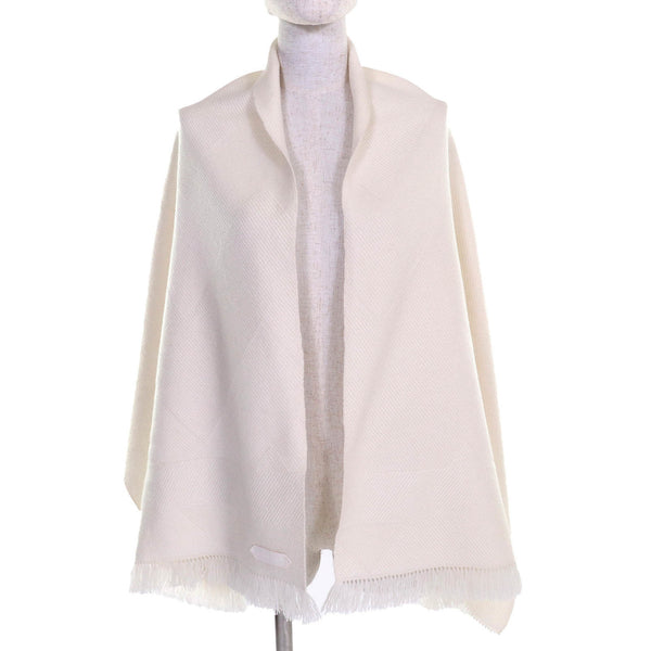 HERMES Chevron Zoom 100% Cashmere Fringe Shawl/Scarf with Leather Logo Patch, Ivory, Made in Nepal, Women\'s