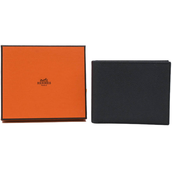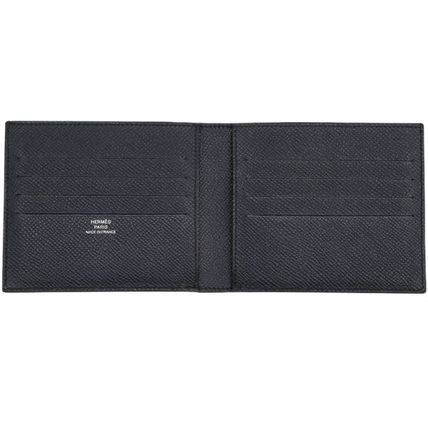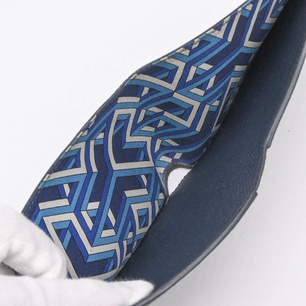 HERMES Citizen Twill Compact Silkin Wallet, Epsom Leather Bifold Evercolor Navy Blue