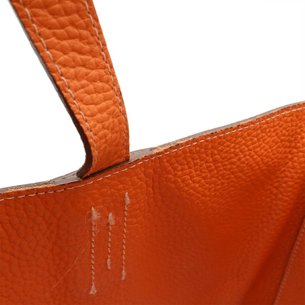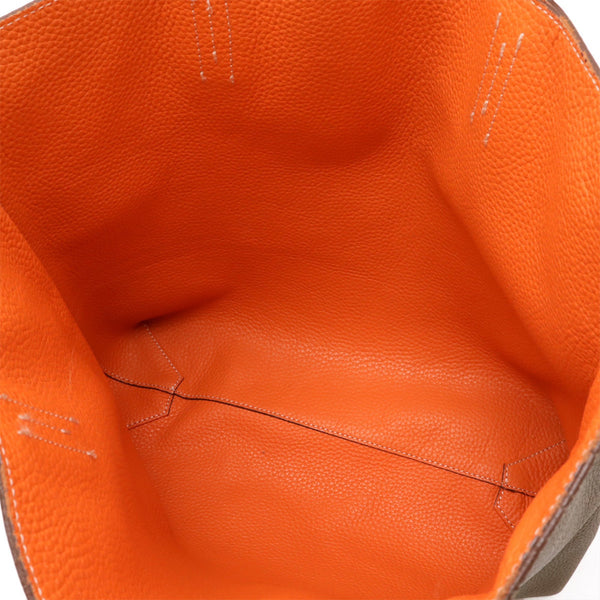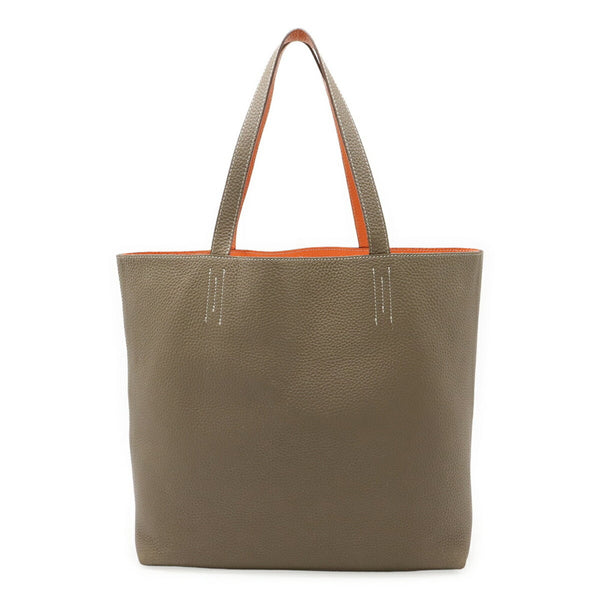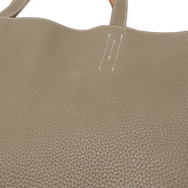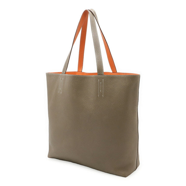 HERMES Double Sens 36 Tote/Shoulder Bag, Reversible, Taurillon Clemence Etoupe, Orange