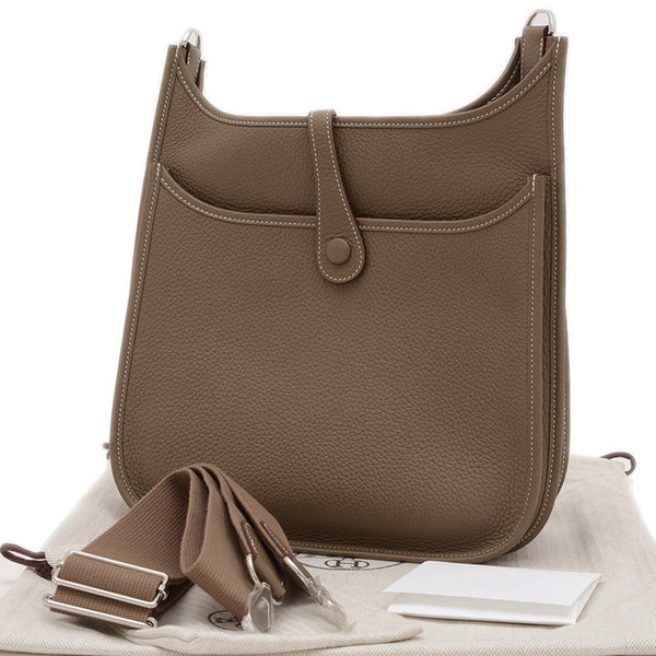 Hermes Evelyn 3 PM Shoulder Bag Taurillon Etoupe Silver Hardware K Stamp